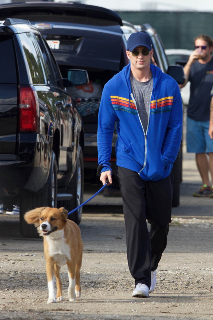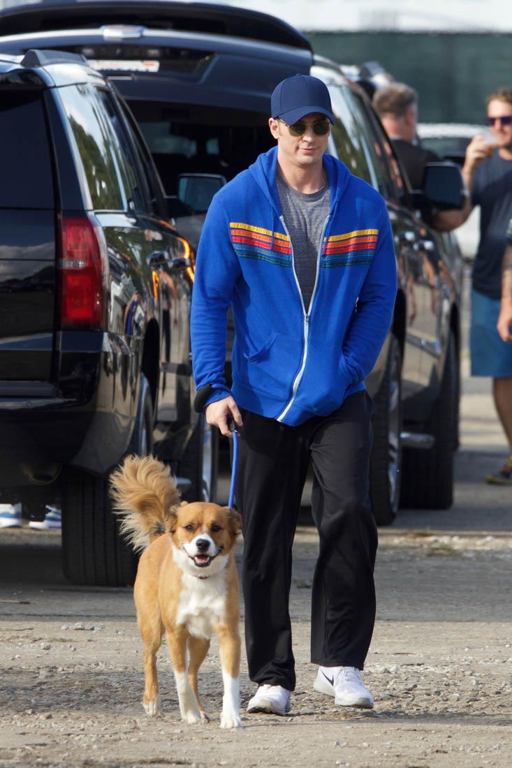 Here's Chris on the set of Avengers 4 with his dog last week.
