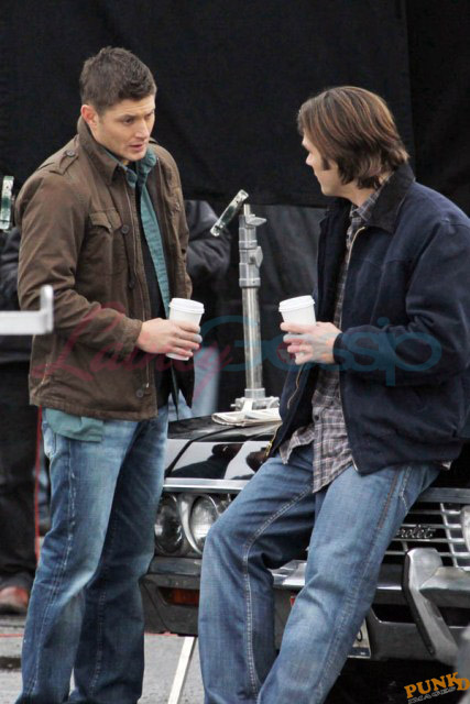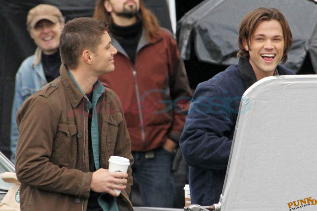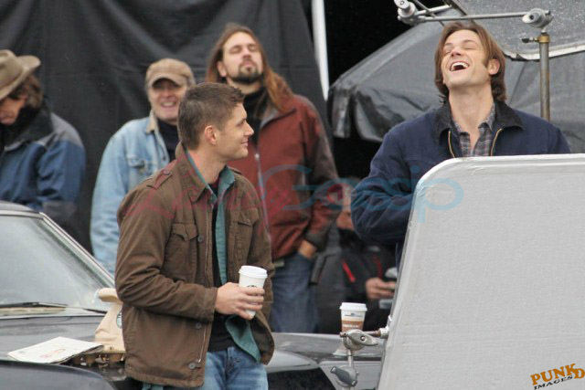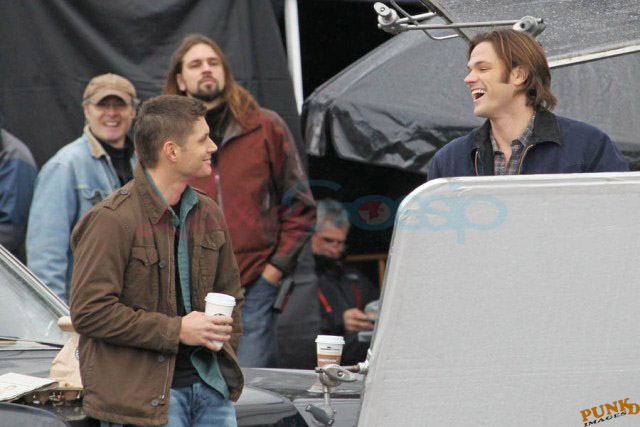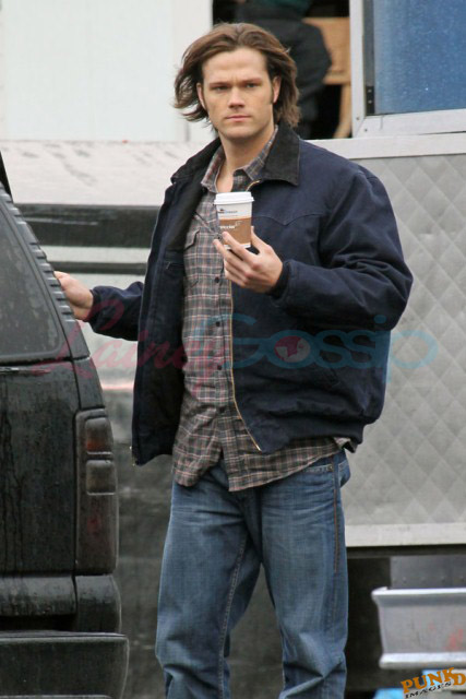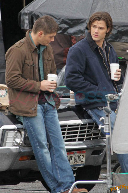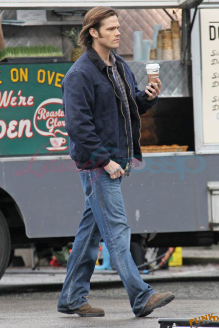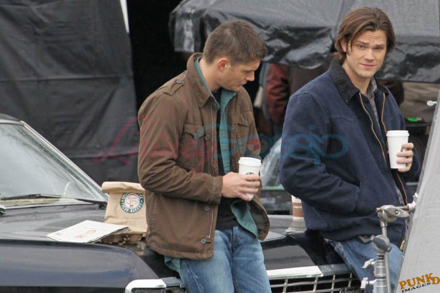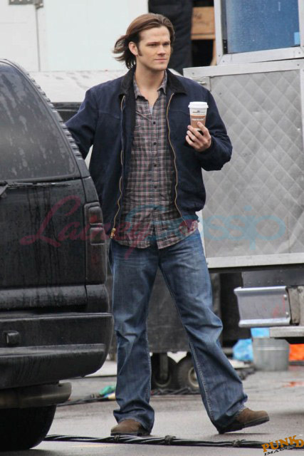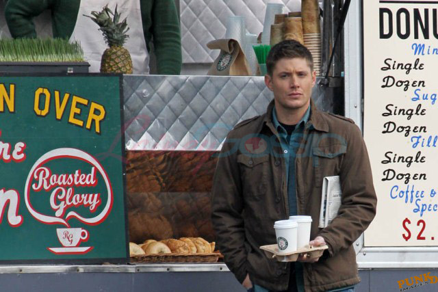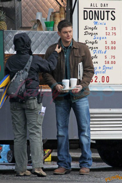 Every week I receive requests for more Jensen Ackles or Jared Padalecki, or both. I’m sorry I’m not more personally into it. New photos just turned up though – from yesterday, in Vancouver, over coffee while shooting scenes for Supernatural, the last few days of production before wrapping up for the holiday and resuming in the New Year.