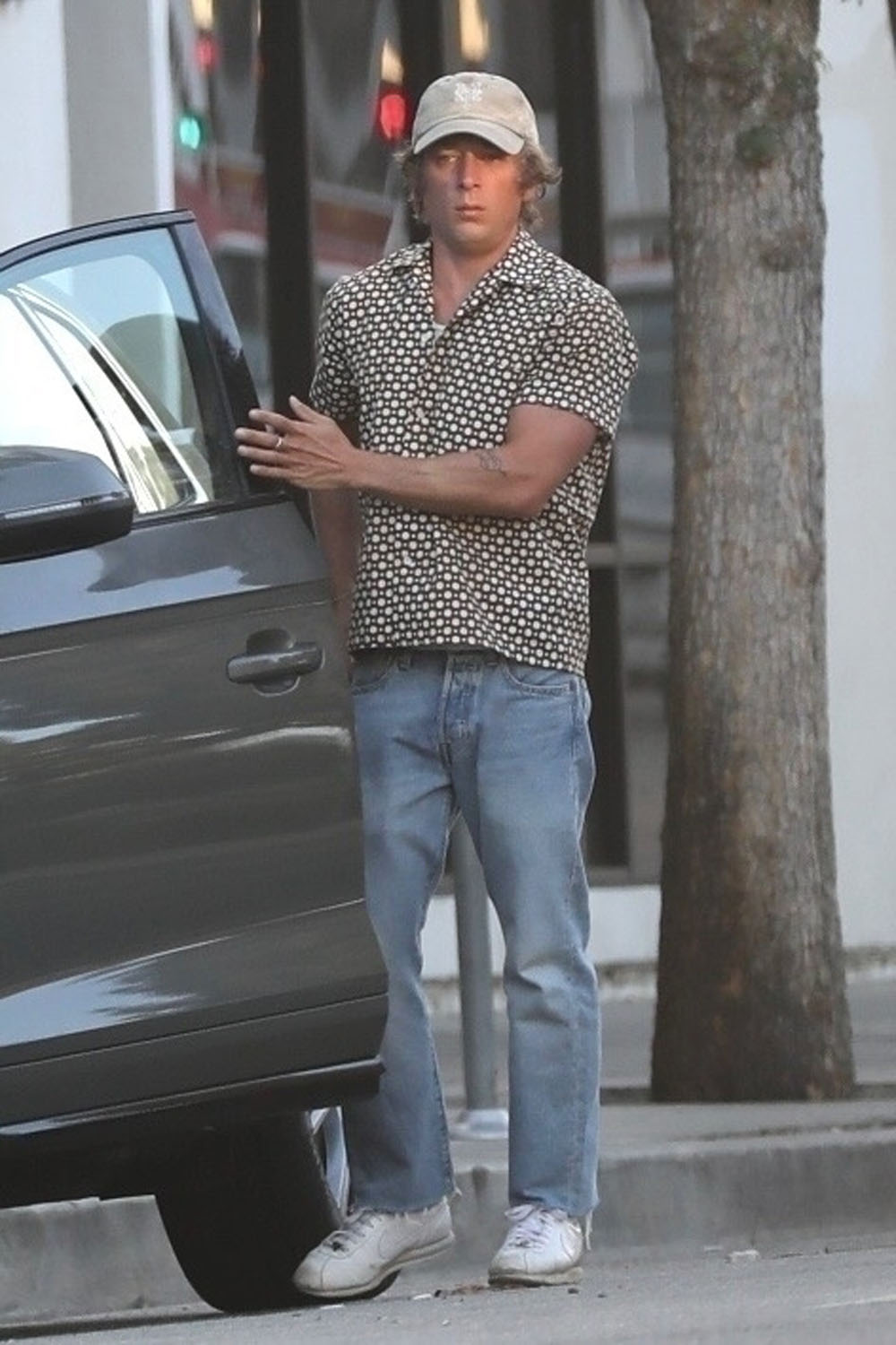 He was papped yesterday wearing a short-sleeve printed shirt, the same one he was wearing on the weekend when he was photographed kissing model Ashley Moore. There’s a 90s/early 2000s vibe to this style, non? Back then the shirt was often worn open over a white one and the jeans were as baggy as Jeremy’s. That was before men’s pants got real narrow, with men’s skinny cut going widespread just before 2010. And now, more and more, the pants are loose and wide again. This looks good on Jeremy, it suits him.