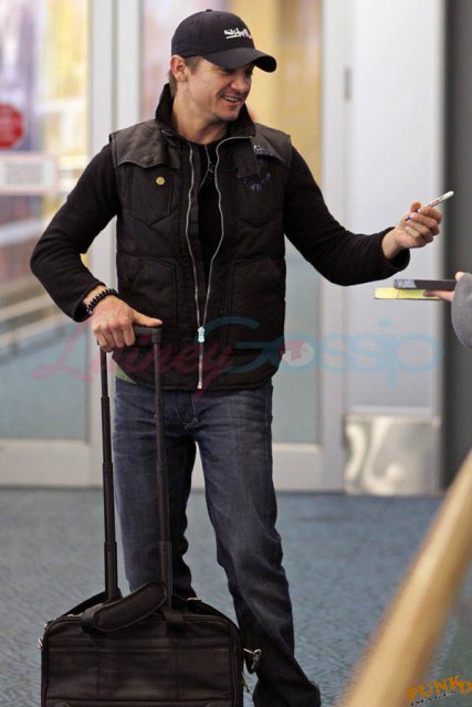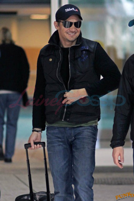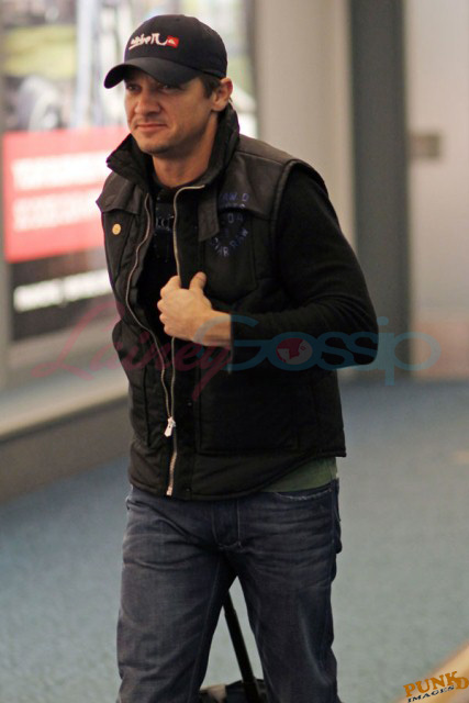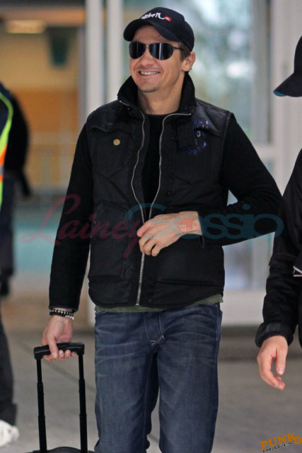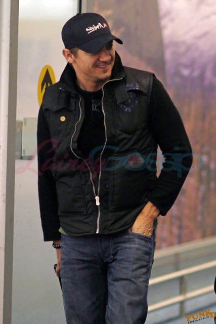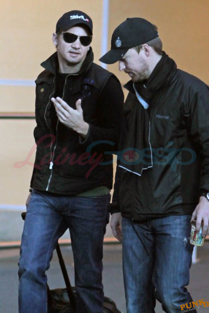 Right now though he has to focus on getting the film on budget and on schedule. So he’s been elusive in Vancouver so far, flying private, travelling with a secret service style security team under a heavy cloak of protection. Unlike Jeremy Renner and the rest of the cast who came in commercial. And I think this is the most attractive I’ve ever seen him since The Hurt Locker, like actually IN The Hurt Locker. Most of the time I don’t like Renner’s angles. Here though, at Vancouver International Airport, here he looks good. And very thin. And fresh off his National Board of Review and Washington Film Critics Award win for Best Ensemble Cast in The Town.