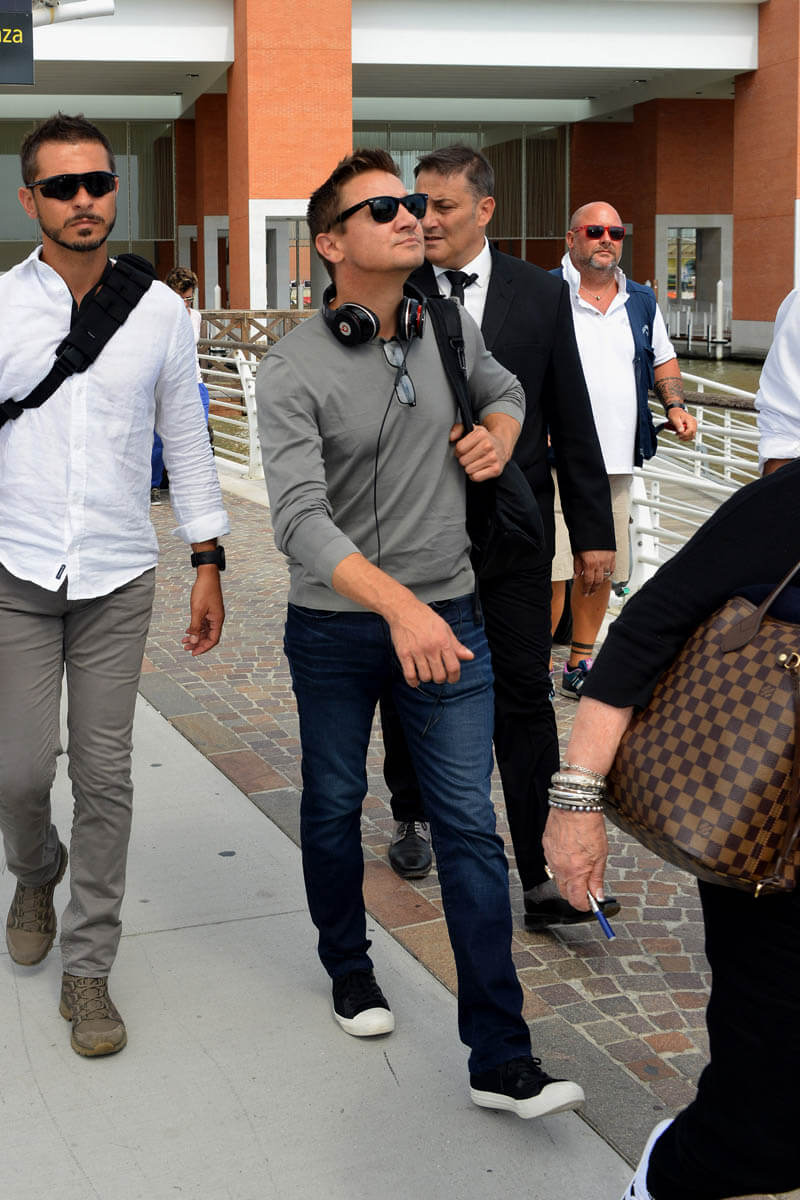 Here is Jeremy Renner, wearing the sh*t out of a pair of jeans, arriving in Venice for the film festival, which kicks off this week. He’s there to support Arrival, in which he plays second fiddle to Amy Adams. Renner—along with Elizabeth Olsen—skipped out on most of the Captain America: Civil War press in order to shoot Wind River (the directorial debut of the writer of Hell or High Water—I got a lot more interested in Wind River after seeing that movie). So it’s been a relatively quiet summer for him. Is he still working on an album? Counting down until Jeremy Renner joins the Hollywood Vampires.