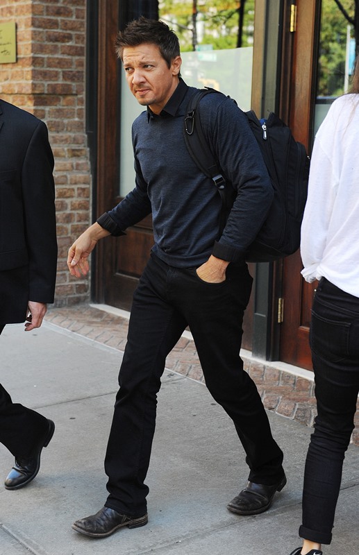 Jeremy Renner’s new movie, Kill The Messenger, opens on October 10 (against RDJ’s The Judge—do you think they’re giving each other a hard time about box office competition?), and as such Renner is giving us the hard shill. Kill The Messenger is opening in a crowded October dominated by a lot of flashy titles like Gone Girl and Fury, so he’s got to hustle to draw attention to his movie. Last week he told us about his married status, and this week, in an interview with The Daily Beast, Renner tells us about, um…how he’s grumpy?