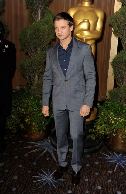Renner was at the Oscar Nominees Luncheon yesterday in LA. He’s up against Christian Bale for Best Supporting Actor. Which means there’s really little to no chance. Because if Bale loses, and he won’t, it’ll go to Geoffrey Rush. So in this case, for Renner, that’s even better. When there’s no pressure and it’s all just a month-long party while people celebrate you every day and everywhere? Please. That’s exactly how you do it. Especially when the girls are extra receptive with your back-to-back Oscar nominee title and you can fly low key without the spotlight of a frontrunner. Why waste all those good moves?