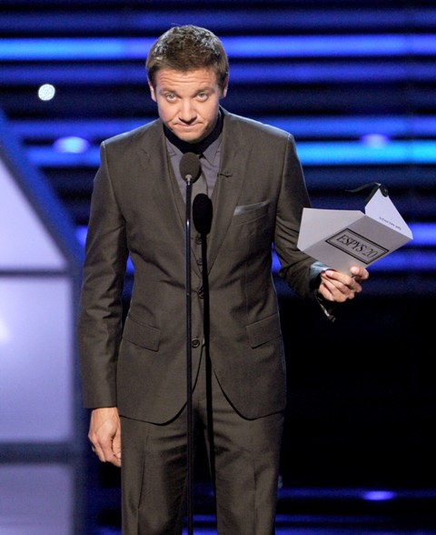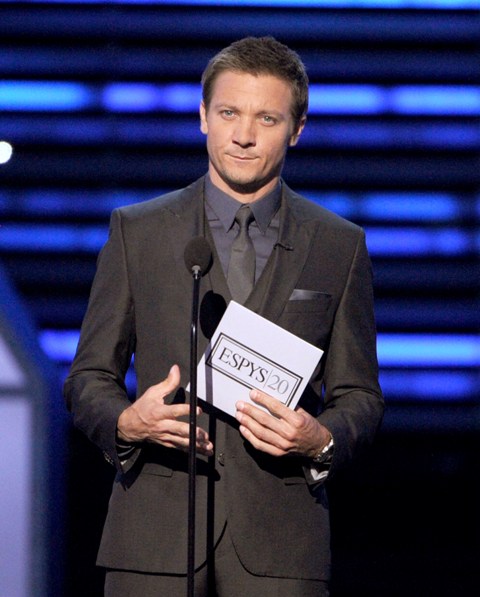 Yesterday I received an email from a reader called Kendra who complained that it had been 21 days since the last Jeremy Renner post and this was unacceptable. Well, Kendra, he presented at the ESPYs last night so the drought is over. I suspect Sarah from Cinesnark http://cinesnark.wordpress.com/ probably isn’t sorry about this either because, last I checked, Renner is her jam.