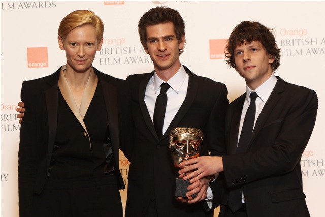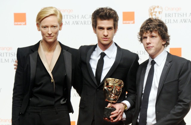 Both guys were nominated for their roles in The Social Network and Garfield was up for the Orange Rising Star Award, too, but neither brought home any hardware (they weren’t really expected to). They did, however, accept David Fincher’s surprise Best Director win over The King’s Speech’s Tom Hooper since Fincher wasn’t there. Was that an experience over youth thing? Or is The Social Network not as dead as everyone thought? We have a race!