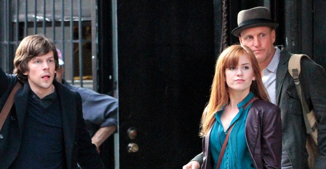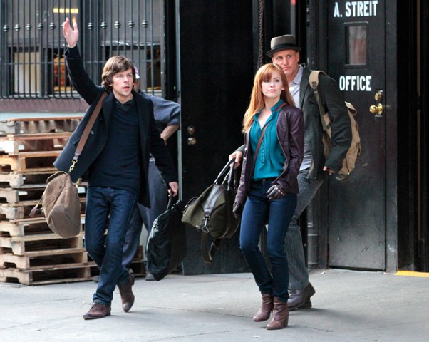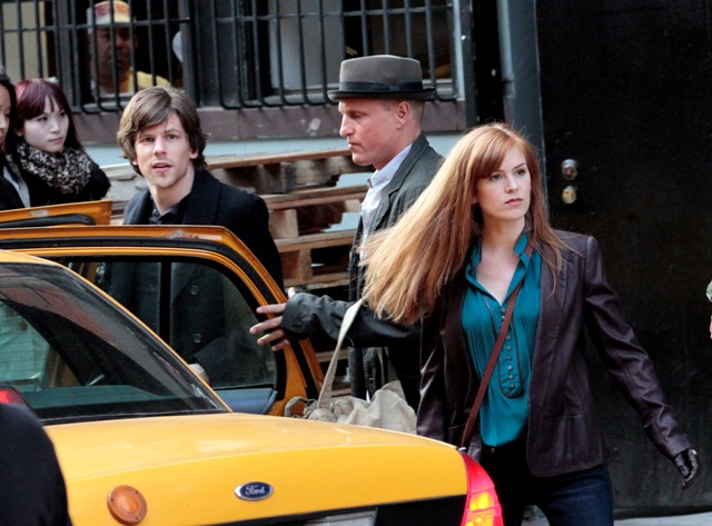 Here he is shooting Now You See Me in New York with Isla Fisher and Woody Harrelson yesterday. Mark Ruffalo was also on set in the afternoon with Dave Franco. Obviously we all have to see this movie. Remember, it’s an original script too.