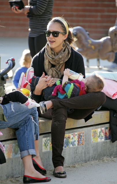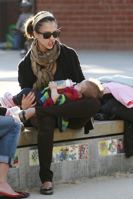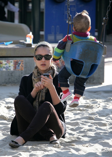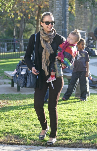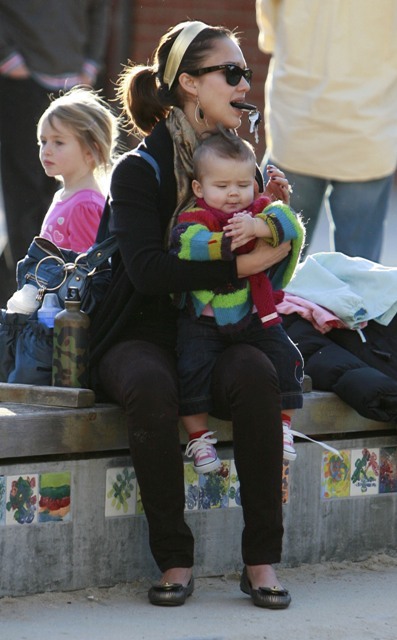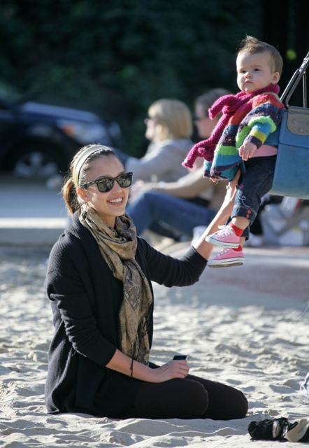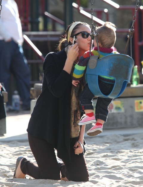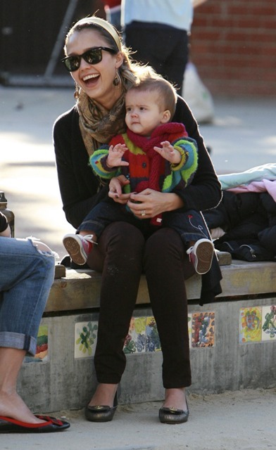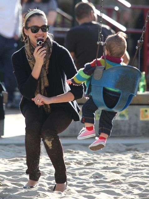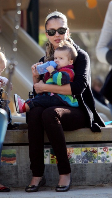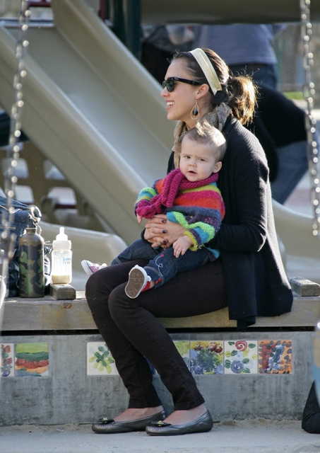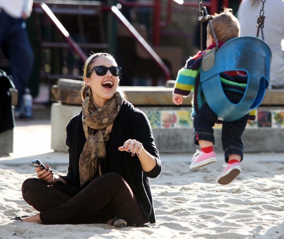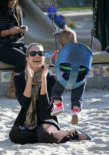 Sunday afternoon, Alba found herself at the park with baby Honor, the perfect doting mother, big smile, happy play time, doesn’t seem to mind the presence of the paps at all. Because she wants you to believe it: she’s not a bad actor, she’s simply a great mom pimping out her kid.