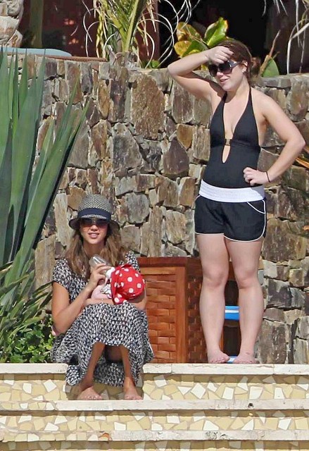 Jessica Alba is spending New Year’s in Mexico with her family. It’s been just over 4 months since she and her husband Cash Warren had baby girl Haven; she looks great in a bikini already. Alba currently has no projects lined up for 2012. But first daughter Honor’s photos were sold in 2008 to OK! Magazine for a reported $1.5 million. Does Haven get more or less? This is what you do when the acting jobs dry up.
