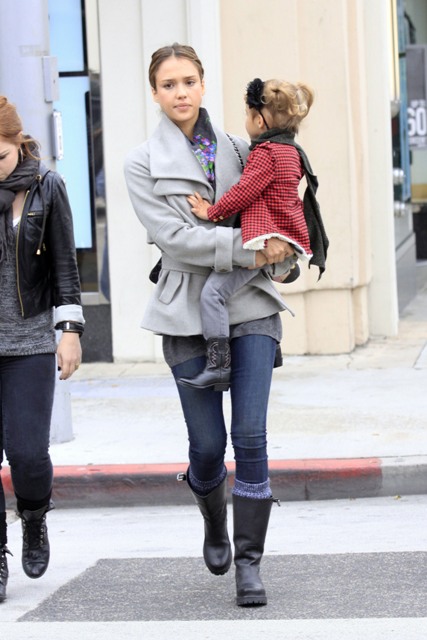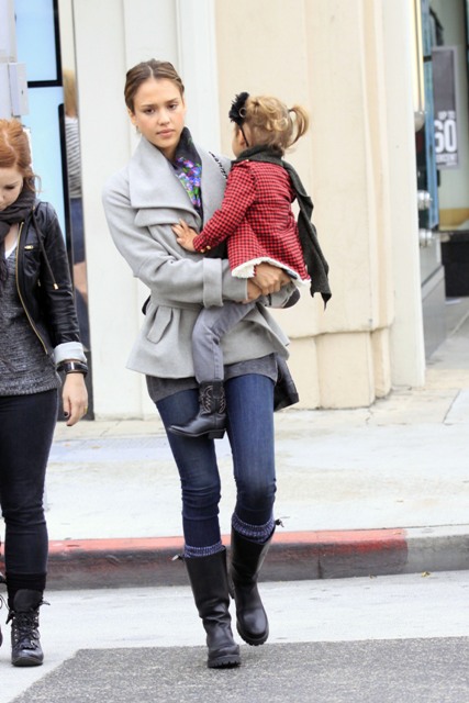 Also attached – Alba and her fat thighs with daughter Honor yesterday.
