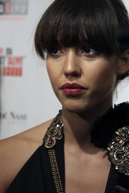 This is Jessica Alba last night at the Black Ball, hanging out with Alicia Keys and Justin Timberlake and trying to pretend she can roll in the same river of talent.