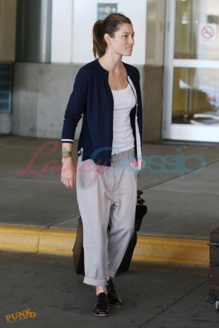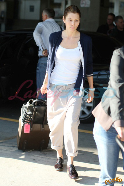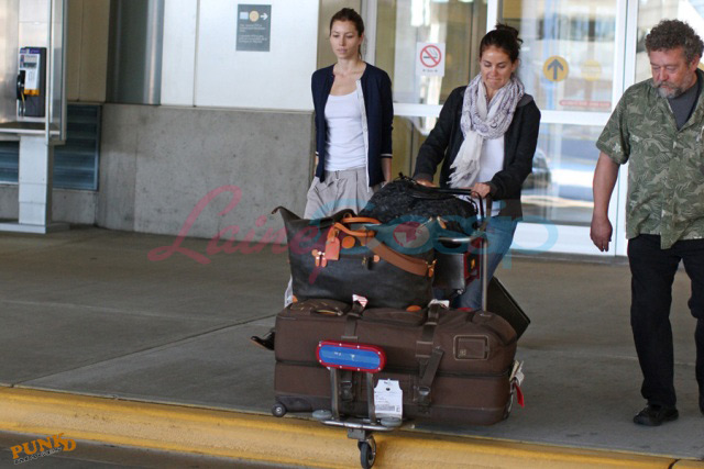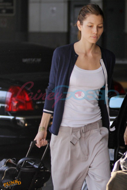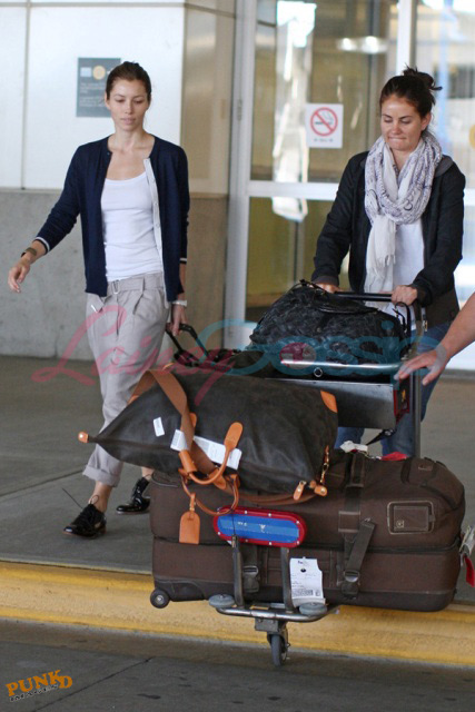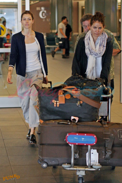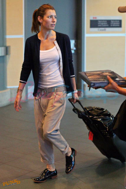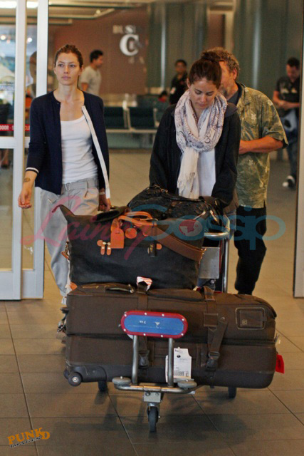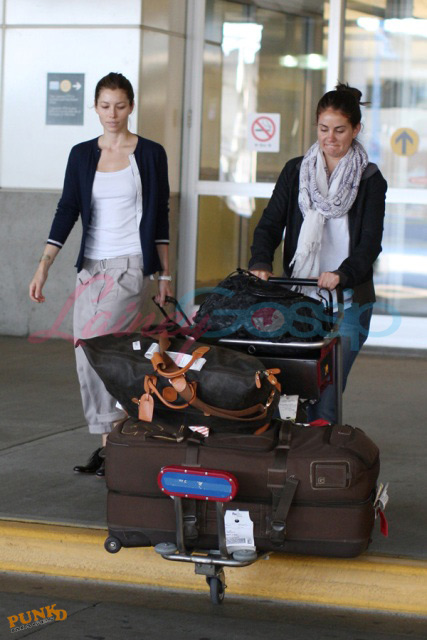 This is a fresh faced and swollen lipped Jessica Biel at the airport with her assistant. Looks like she’ll be staying awhile.