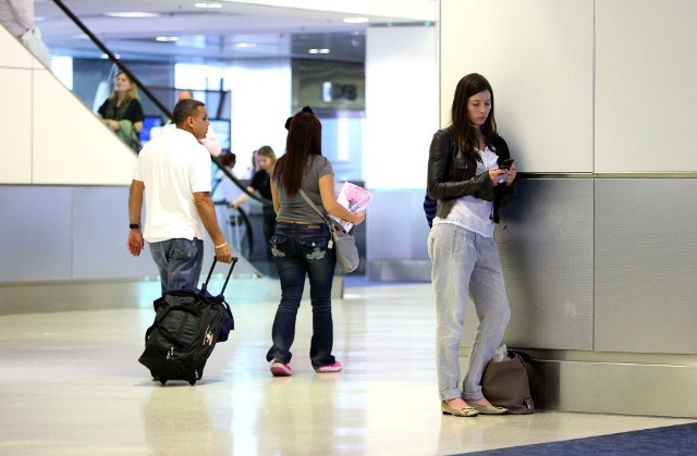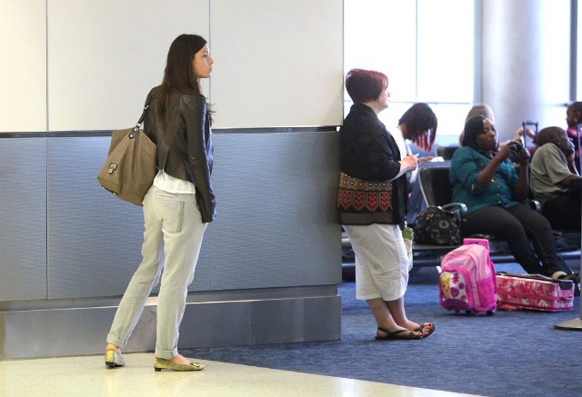 Does she really need to be leaning up against some random wall reading her spirituality book when a seat facing a corner– or an airline lounge, how about that for a novel idea? – would have afforded her much more privacy? I guess she’d rather be associated with Kellan Lutz. Shame.