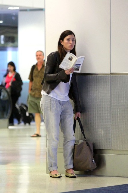 Jessica Biel was photographed at Miami airport yesterday. Apparently she was flying off to an island in the Caribbean for some relaxation after having spent the last few weeks on set in Louisiana shooting a movie called Playing The Field with Gerard Butler’s Spittle.