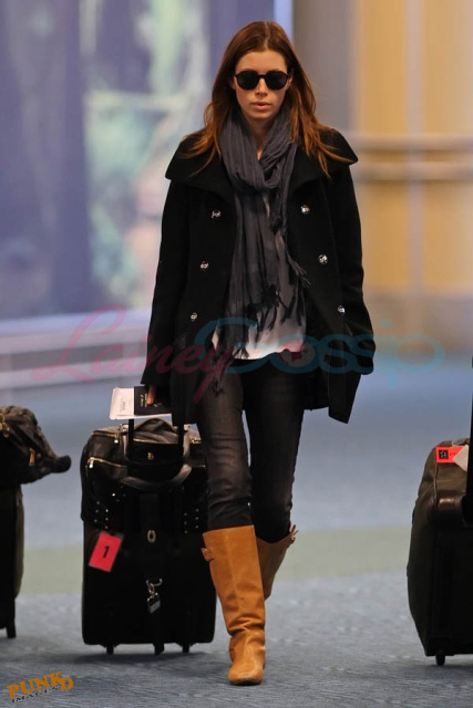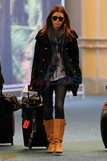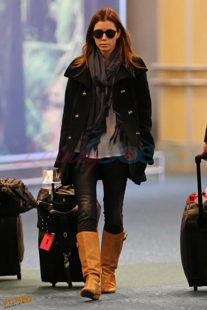 This is Jessica arriving back in Vancouver on Sunday, so skinny, to resume work on A-Team. Shortly after touching down, she and her assistant were spotted at a restaurant in Kits. Apparently she looked listless and bored, barely touching her food.