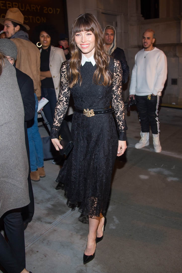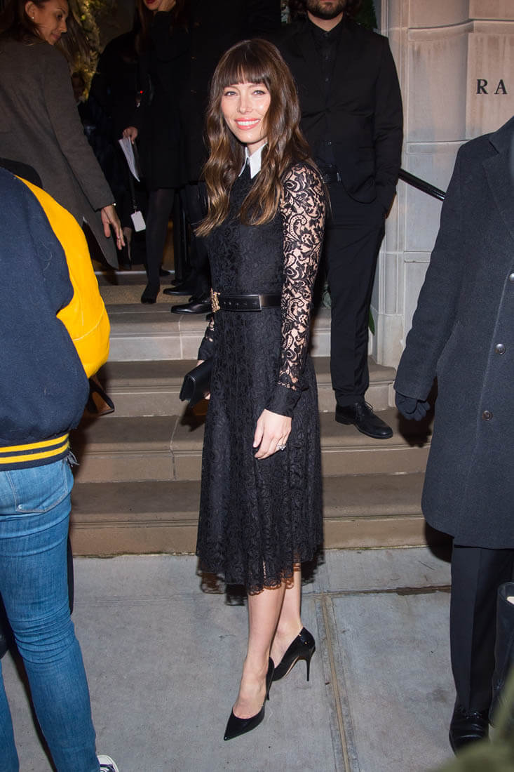 Jessica Biel was front row at the Ralph Lauren show at NYFW yesterday. This dress looks great on her. I wish she’d grow out that fringe. Jessica’s relationship with the brand is not new. She wore RL to the MET Gala a few years ago: