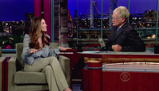 Before the event, Biel also stopped by Letterman for an interview to promote The A-Team. She told a story about going snowboarding with her friends and deliberately heading out of bounds and having to call ski patrol for rescue. It’s a great use of emergency services. But she does shout out Vancouver. She also seems to be boring Letterman. Like she can’t keep up with him. Or maybe that’s just me.