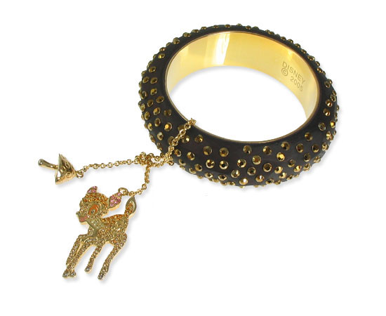 Skip to the next if you don’t care for my thank you’s but there’s a giveaway involved at the bottom that you might not want to miss. Like an idiot I forgot to take my camera to the carpet on Sunday so screen caps will have to do. Luckily the Cargo girls who did our makeup took a few shots from Friday when we taped the show from the red carpet. My love and thanks to those who helped me look half decent. The yellow gown on Oscar night was Laundry by Shelli Segal and as I said on the air, I’m wearing Spanx underneath – only the best invention ever! The black and white lace number is Christina Darling and the accessories, the accessories are what y’all keep asking about. I was accesso-styled from head to toe entirely by Heather at Kiss & Makeup. The 2 swords are Elizabeth Cole Jewelry. My lovely husband has purchased the amazing Soixante Neuf earrings I was wearing during the Oscar pre-show but eTalk host Tanya Kim wore a similar pair by Citrine called “Rain” – see attached – which happened to be on my ears when Three Whiskers leered at me the other day at the Roosevelt at 4am Monday morning. As for the bangles and the key dangling from them – not a key but Bambi. I doubled up on Disney Couture - yes Disney Couture, seriously the most gorgeous bangles ever. All available at Kiss & Makeup online. And finally – to all of you for watching. It was a trip. It was live tv and it was crazy stressful and I had a great time. More importantly though, I was there because of your support. So as a token of my appreciation, I am giving away one of the two Bambi Bangles I wore at the Oscars to one lucky winner. Please read instructions below – super easy! Send an email to Lainey@laineygossip.com with “Bangle” as the subject with your name and your location and answer this question: Is Jessica Biel worthy? Yes or no. One word will suffice. Enter by Monday March 5th 12:00pm PST. One winner will be selected randomly and contacted by Tuesday March 6th. Thank you, love you, owe you.