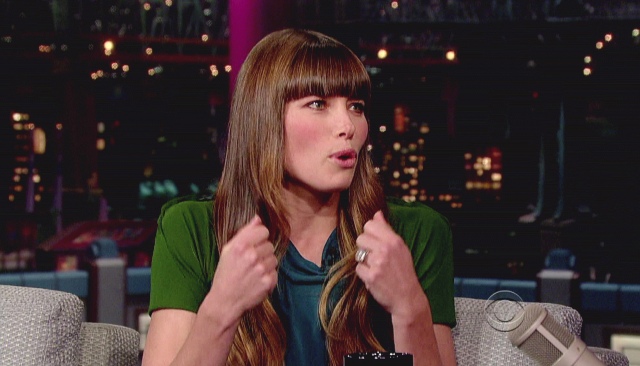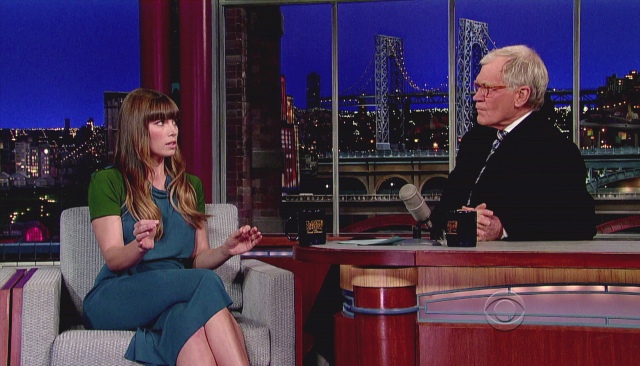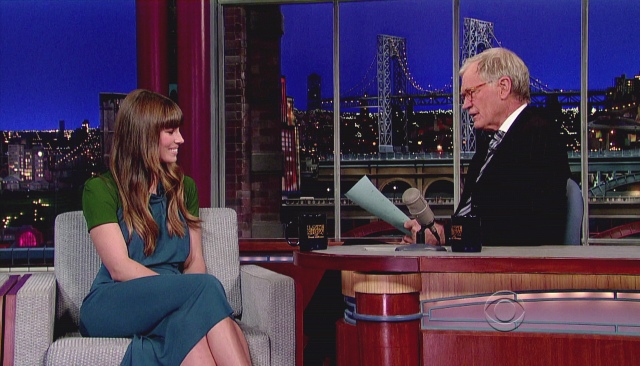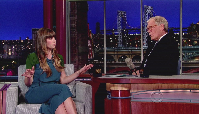 Here’s Mrs Timberlake at Letterman last night. I love this dress -- Roland Mouret. It’s gorgeous. And it fits her beautifully. And it’s exactly what Victoria Beckham wishes she could come up with. Next season, maybe. What I don’t love is the coat she chose to wear over it. I think the length is what’s bothering me. Also I hate the shoes.