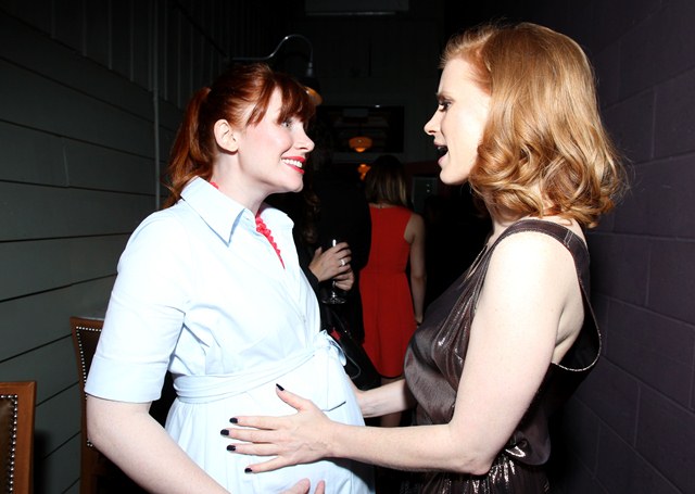 Bryce obviously is pregnant. This morning she came into the etalk lounge in a maxi dress with stripes. Looked lovely. Better in person than in photos. And very, very sweet.