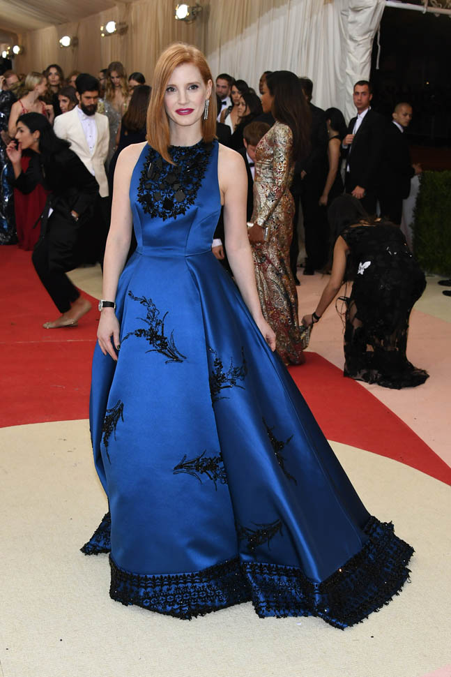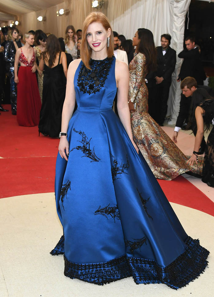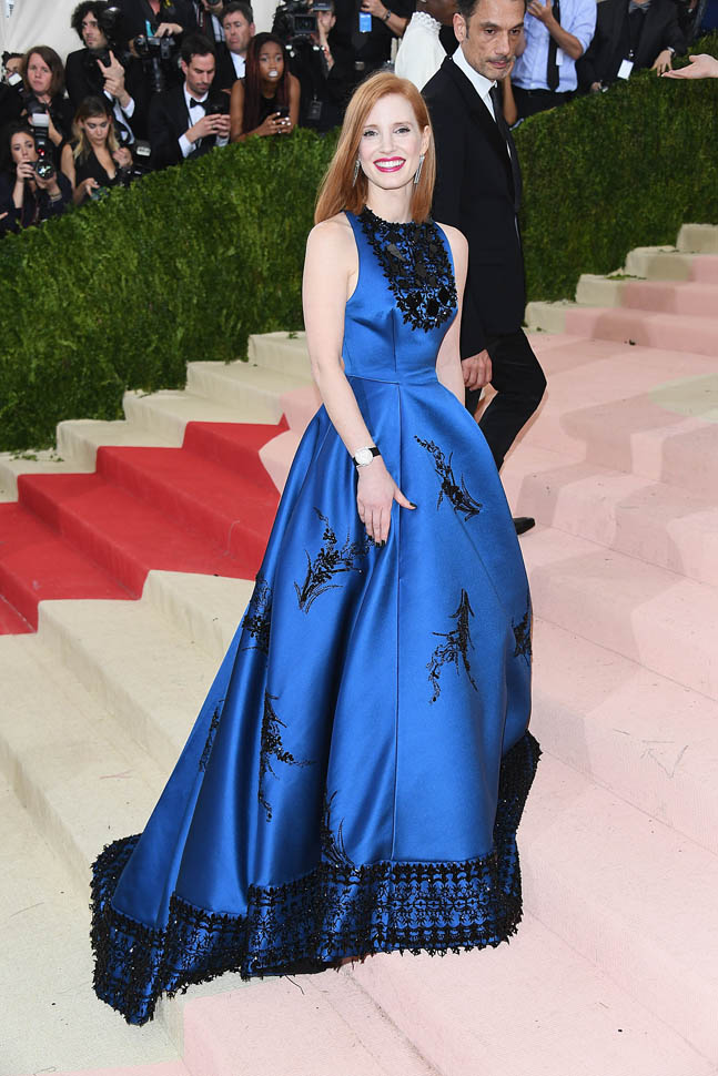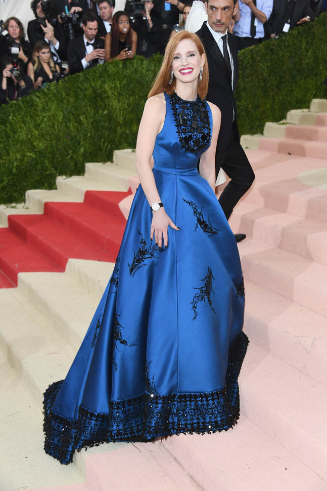 Neither Jessica or Xavier's look fit the MET Gala theme, but it’s refreshing to see her sport a different silhouette, isn't it? Lesson here: no cleavage can be just as sexy, if not sexier, than cleavage.
