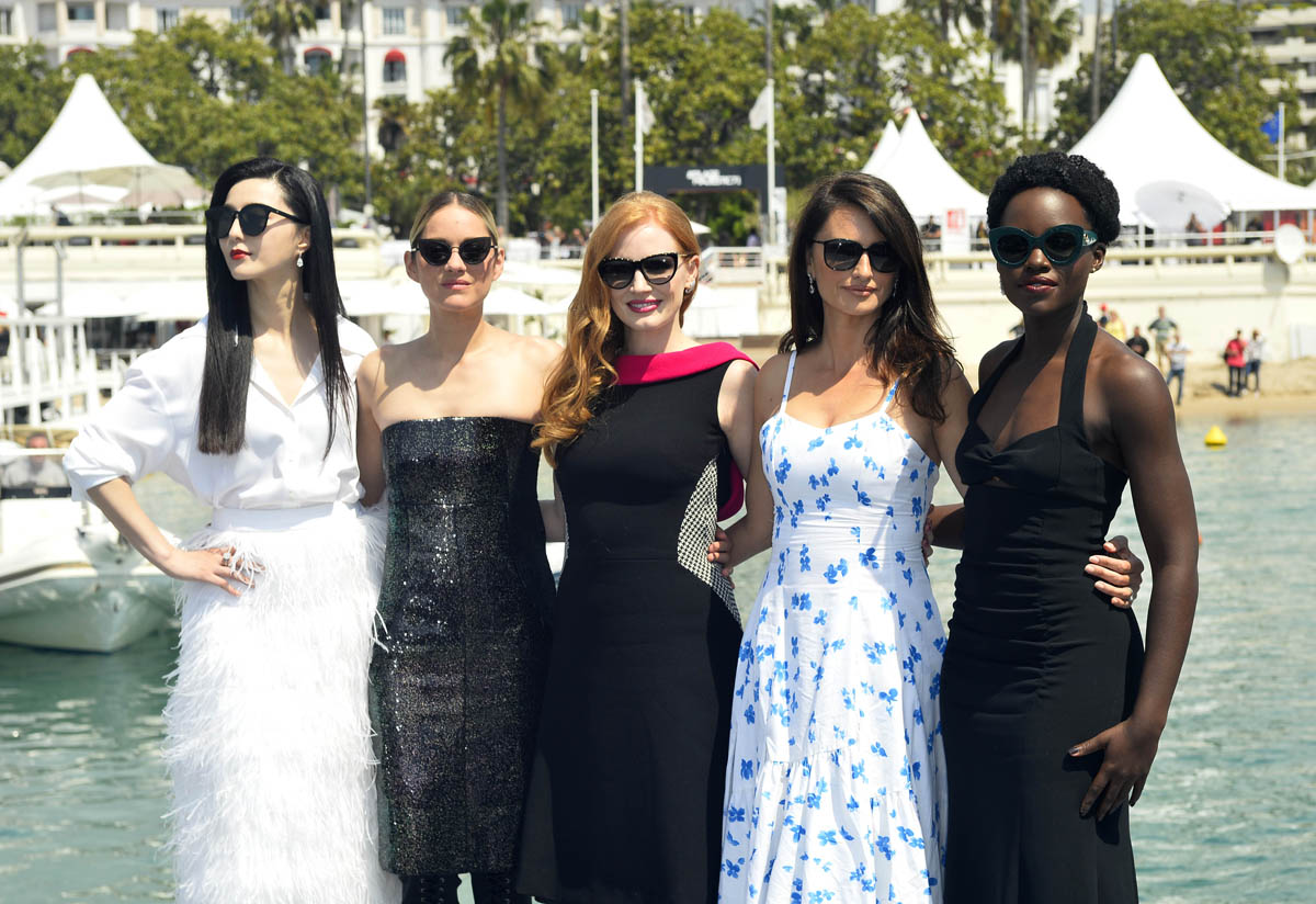 Jessica Chastain has become one of the most visible advocates for women in the film industry, speaking out for more inclusion and using her position to get her co-stars equal pay. And now she’s not waiting for people to bring her starring vehicles, she’s making her own starring vehicle and bringing a diverse group of talented women with her. The project is 355, which is scouting investors at the Cannes film market and had a splashy presentation yesterday to entice people to buy into the targeted $75+ million budget. (Technically that’s a big budget but compared to, say, superhero movies, it’s chump change.) Chastain turned out with her co-stars: Lupita Nyong’o, Fan Bingbing, Marion Cotillard, and Penelope Cruz.
