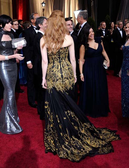 The dress was perfect. I wondered a while back when she came across it whether, with the millions of dresses she's worn over the past year, she found it early and hung onto it, and all the others were also-rans that sufficed for BAFTAs and etc. It was a bit of a choice, so I'm glad she was bold enough to commit to it. I also loved her hair, colour and styling. I'm agush.