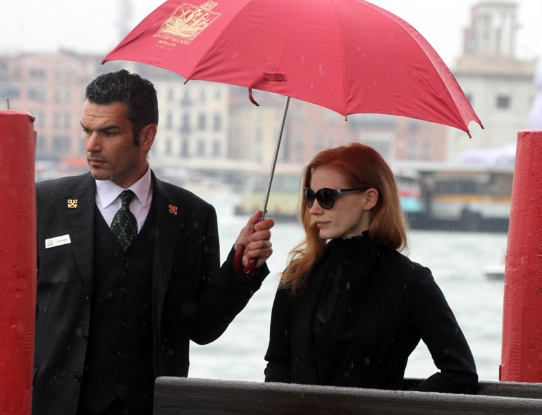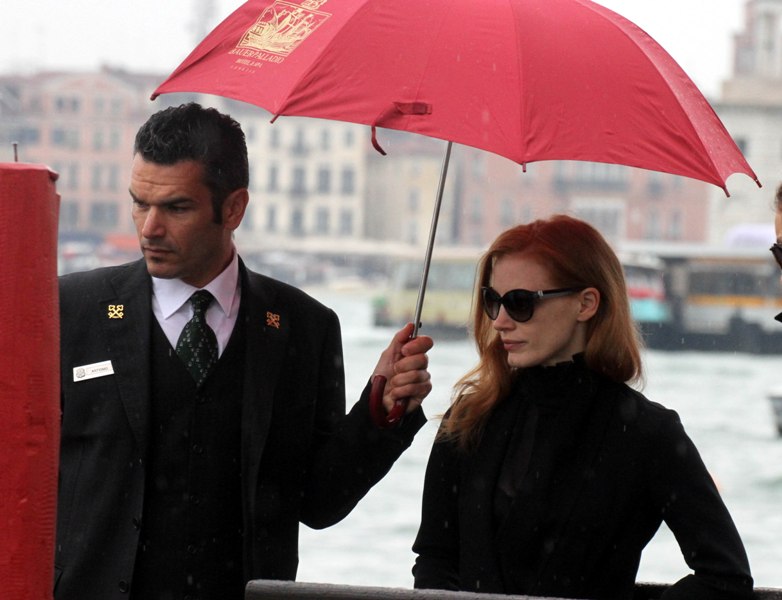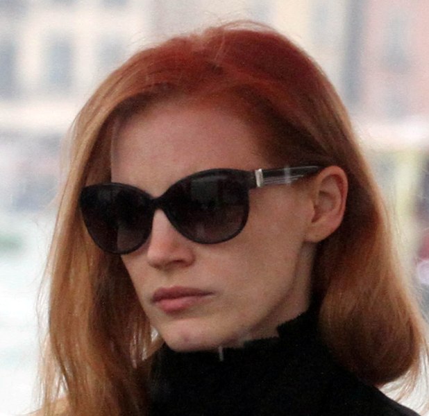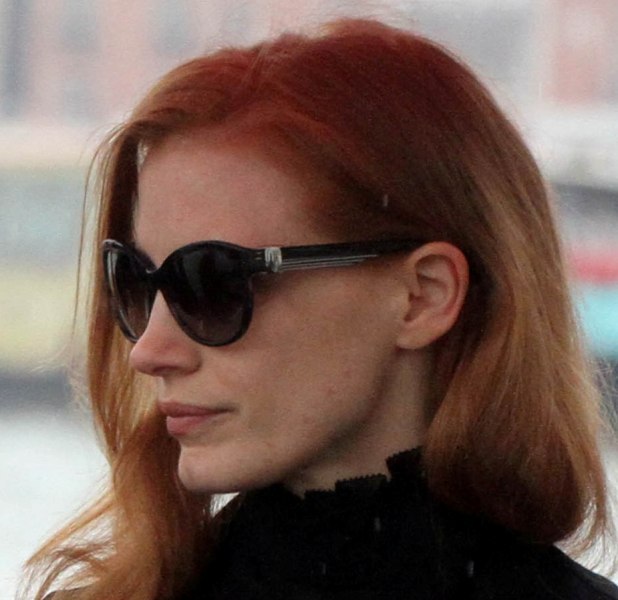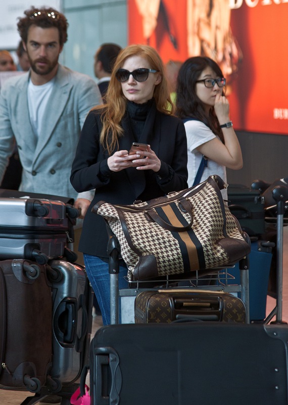 Here are some photos of Jessica Chastain leaving Venice and then arriving at Heathrow today. I’d like to talk about her nose. I’ve just realised how much I love her nose. If you’ve been reading this blog a while, you’ll know that I have a nose fetish because of how I feel about my own nose. Which is a hawk nose. There’s bump on the bridge so it slopes slightly downwards. I get it from my ma, the Chinese Squawking Chicken who, naturally, thinks her nose is wonderful. There obviously was no way I could ever change my nose. And besides, changing noses f-cks with face mapping feng shui. I’d rather have an ugly nose than bad feng shui. So I admire noses from afar.