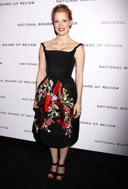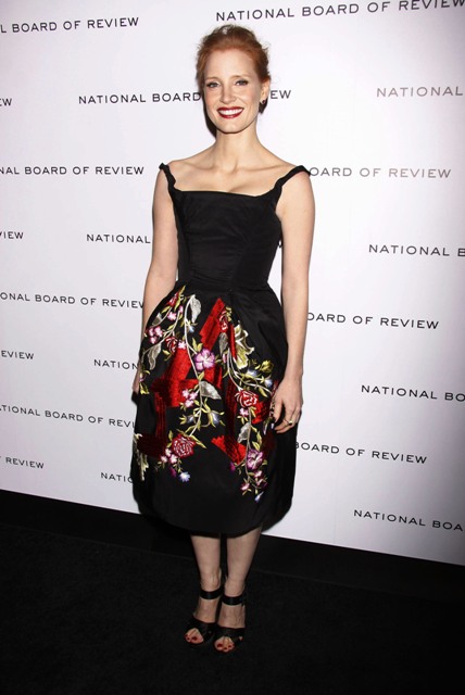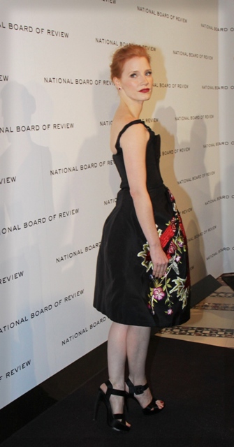 Jessica Chastain, I promise you, won’t be sh-tting on her time on Veronica Mars. Jessica Chastain bursts into tears when Gary Oldman tells her he’s an admirer, humble and grateful to have had the opportunity. Just as she was last night at the NBR, attending as part of the Best Ensemble (The Help).