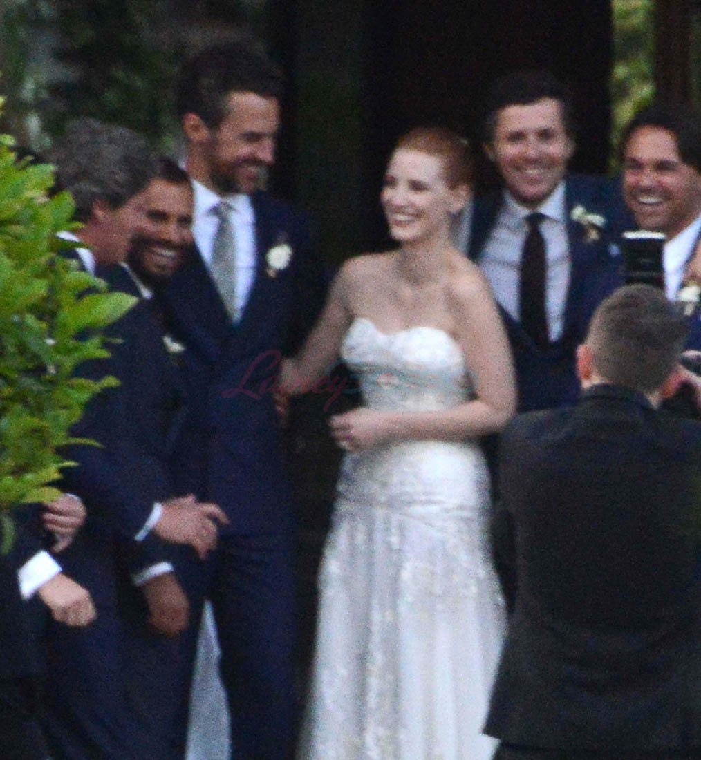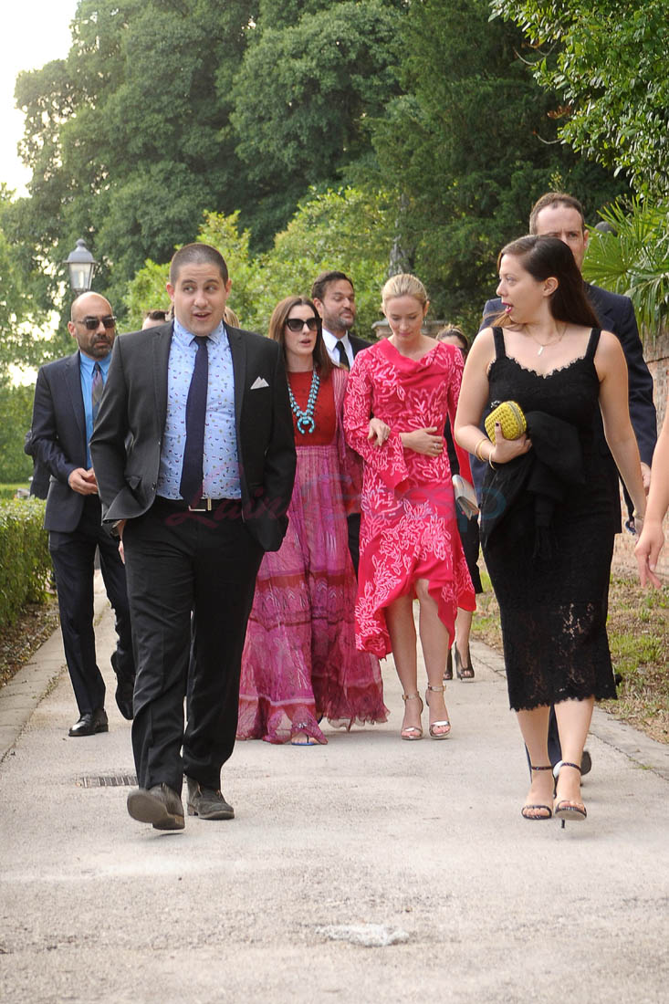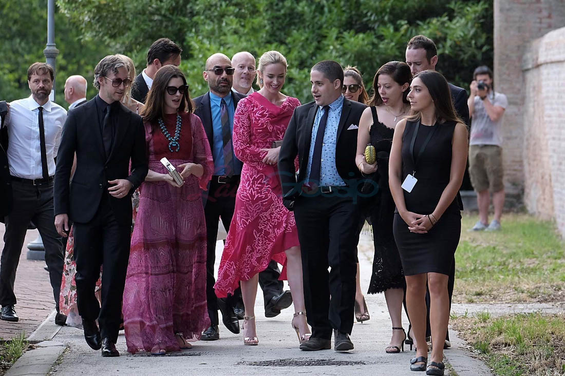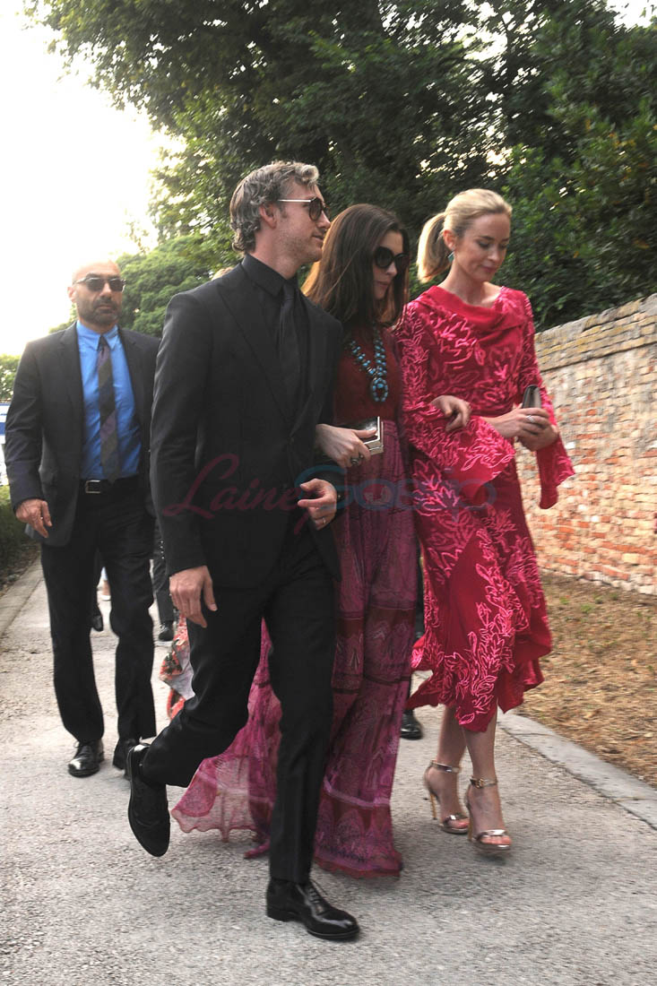 Also attached – Emily Blunt and Anne Hathaway, with her husband, Adam Shulman, attending Jessica’s wedding. Emily and Annie, of course, are close from The Devil Wears Prada. Annie and Jessica worked together on Interstellar. Emily and Jessica were in The Huntsman together. With Charlize Theron.
