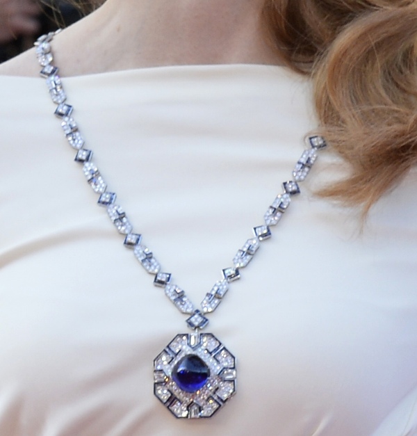 Jessica arrived at the Palais in white, presumably chosen to better show off the millions of dollars around her neck. It’s Bulgari, and I’m guessing it’s a piece originally worn by Dame Elizabeth herself or from the collection that was inspired by the Dame’s Cleopatra. With all the robberies that have happened in Cannes this festival, I hope they’re guarding her with the Secret Service.