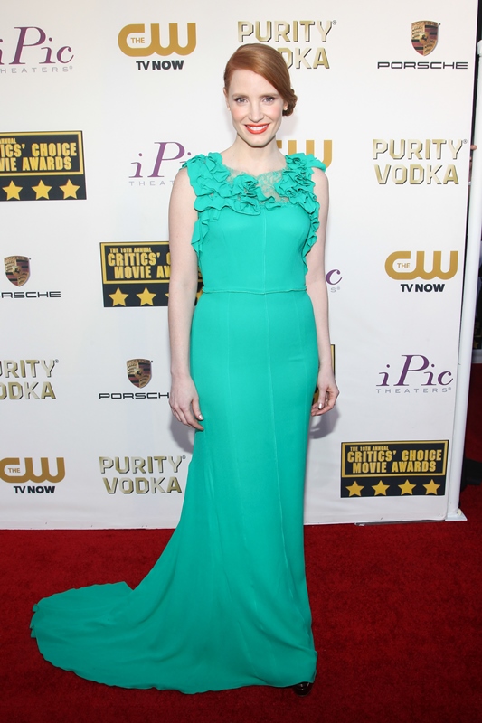 For starters, it’s not flattering. It makes her look 10 years older than she is. That ruffle is all kinds of cheap sh-t. She deserves better. So much better. It’s Jessica Chastain! It should not be hard at all!