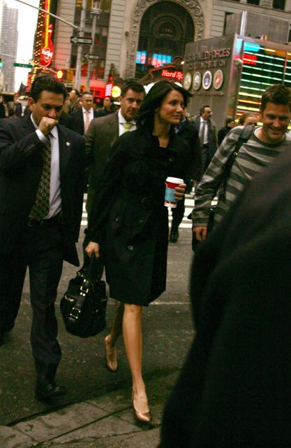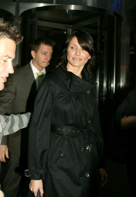 Remember what I said yesterday about her clothes, her shoes, her near perfect fashion sense that will undoubtedly be on display while she’s promoting The Holiday? Flawless on Leno, flawless on Ellen, and today leaving ABC studios – I mean look at the collar on that coat. And those shoes. Those shoes would be tacky on Paris Hilton. Those shoes are holy sh-t hotness on Cameron Diaz and I won’t even bother giving myself a hernia over that bag. It’s the way she wears it, you know? Put the same trench on Jessica Simpson and those white trash tits would somehow find a way to spoil the sass. Dare I say it gossips? I think I’m actually pro-love for Cam Diaz. Source