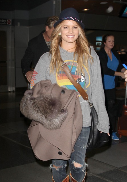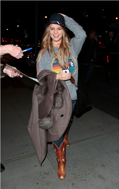 From LA to NYC last night, dressed casually, not styled by the Paves, hair loose and almost natural, you see how pretty she is? And fresh? They make her up and trot her out and she’s easily in her mid 30s when in fact there’s a youthfulness about Jessica’s look that is criminally underappreciated.
