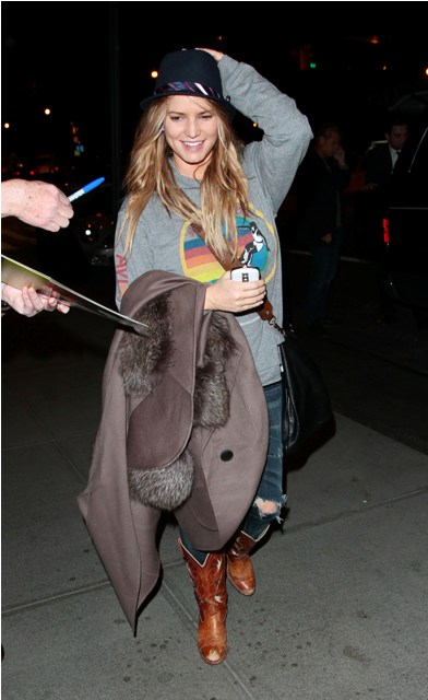 It’s the best Jess there is. In jeans and boots and cap, smiling, no tits popping off in our faces, no soap opera hair, no skanky ass heels…