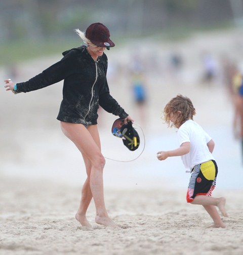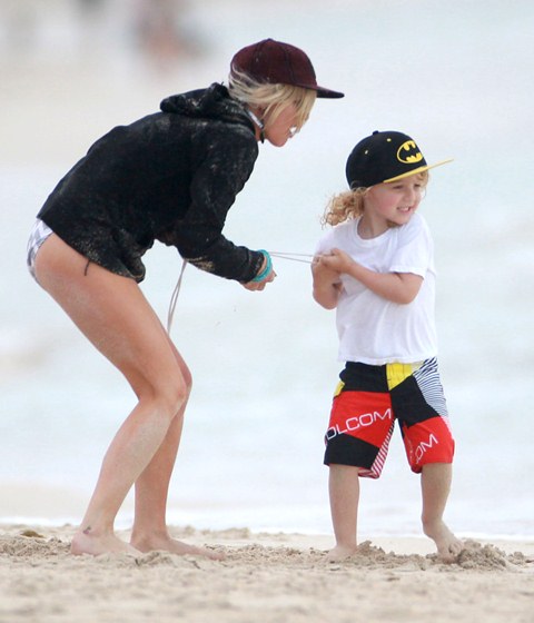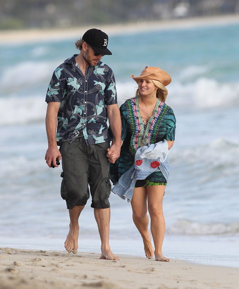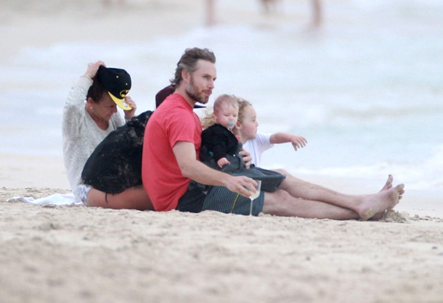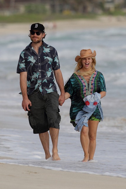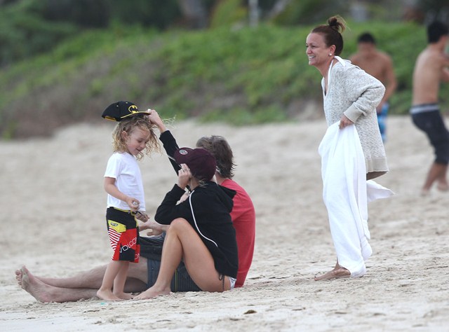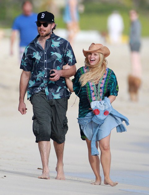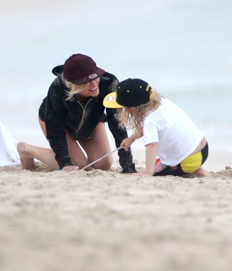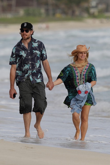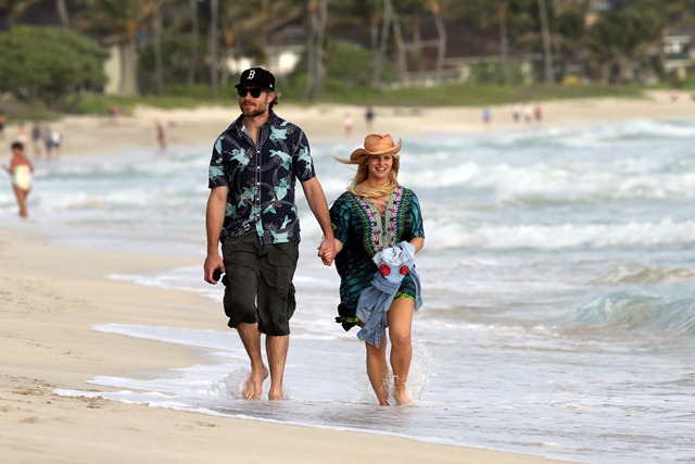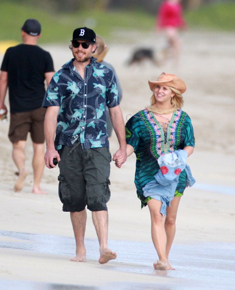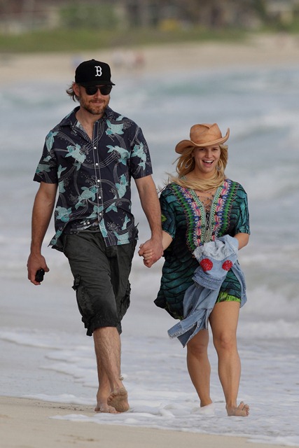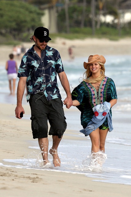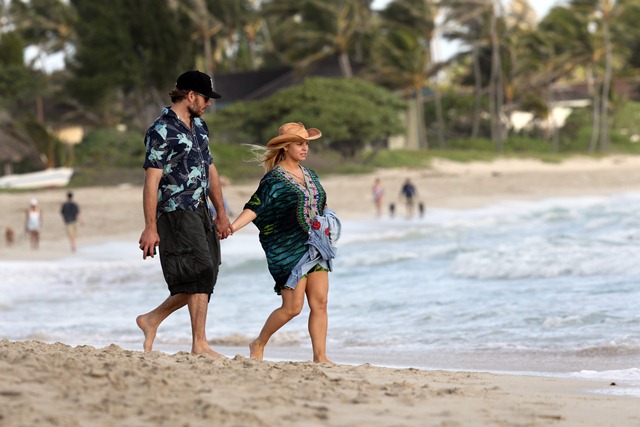 Then, conveniently, the paps converged in Hawaii where Porny’s on holiday with her family. She and her freeloader were photographed walking up and down the beach, holding hands, beaming with joy. You’ll note however that she did not join her sister Ashlee, mom Tina, nephew Bronx, her baby, and her baby father later on, apparently because she’s so tired, you know, just SO TIRED, from all the weight-losing and the child-rearing. THIS is what we’re all supposed to be relating to...
