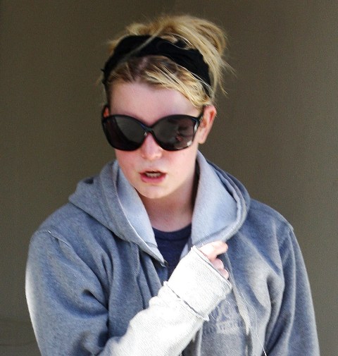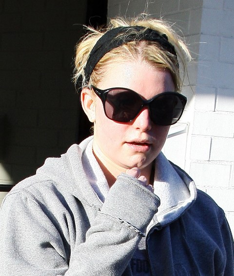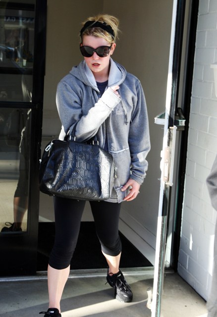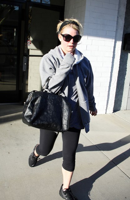 Porny on the other hand wants to tighten up for the wedding. As noted last week, she's signed on with Gwyneth Paltrow's trainer and business partner Tracy Anderson to help her remodel her body. Here she is yesterday looking tired after a workout. So Tracy's busting her ass? That's good. It's not a workout unless your ass is busted.