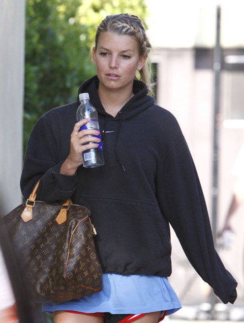 Porny is going back to the gym. She wallowed in her jammies for a couple of weeks after Tony Romo bailed on her and now, obviously, she called up Ken Paves, told him to do her hair, had a makeup artist come by and apply the “natural” look, and made arrangements to be photographed emerging from break up hell.