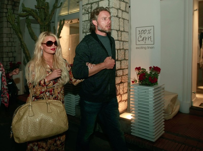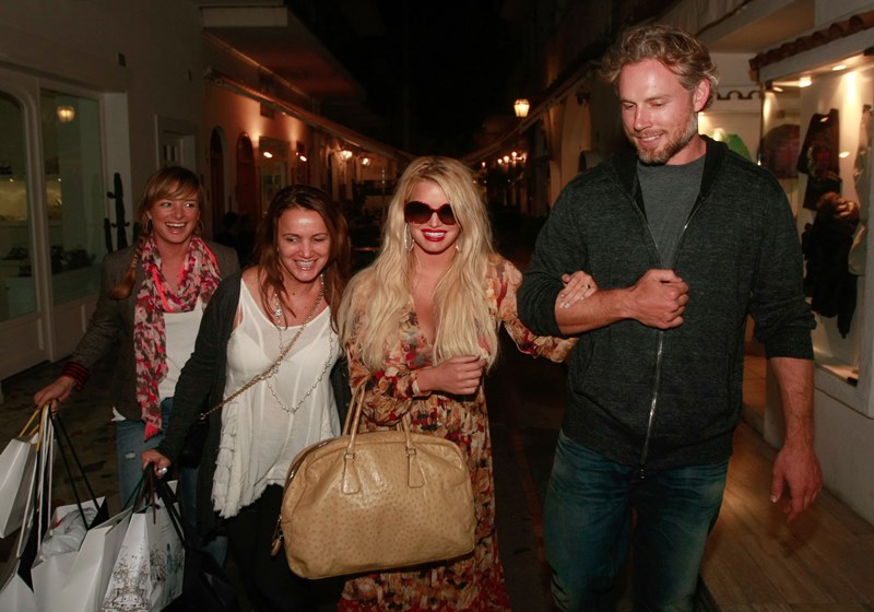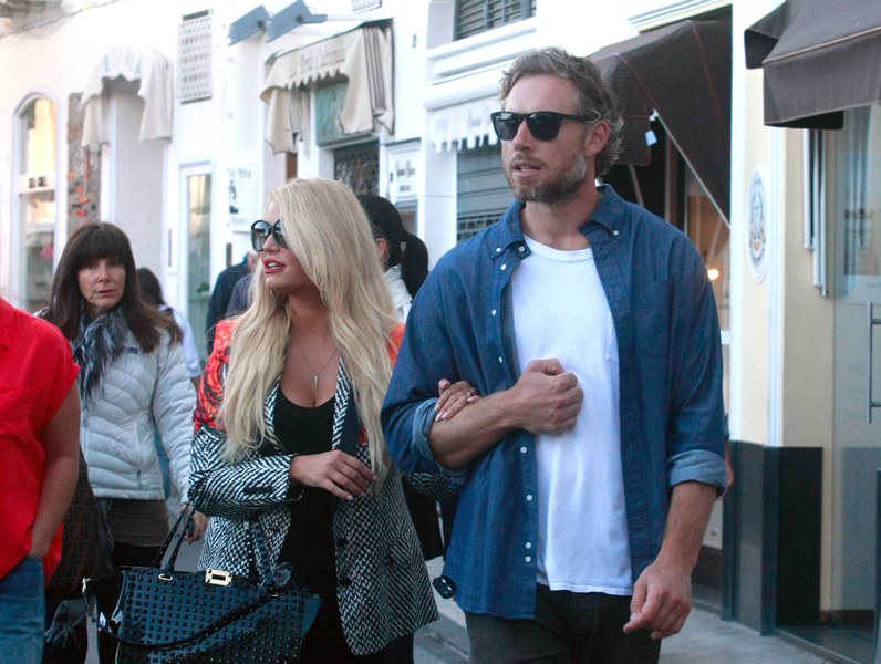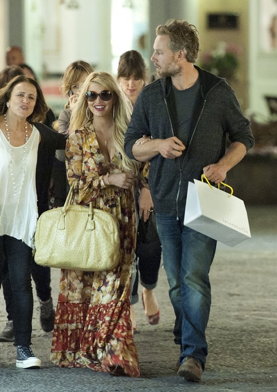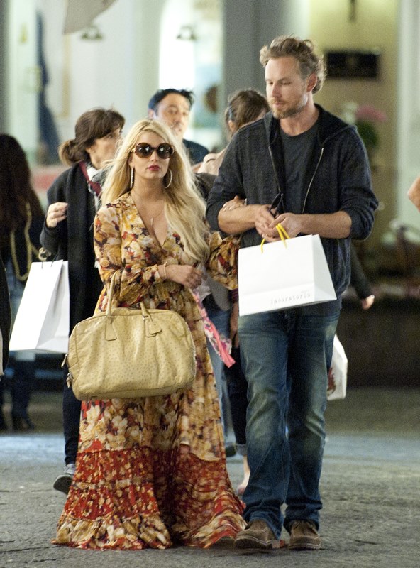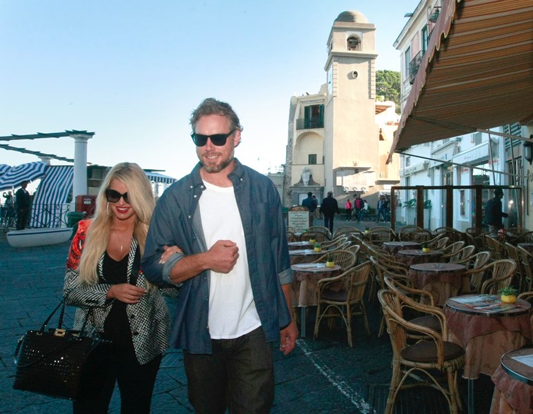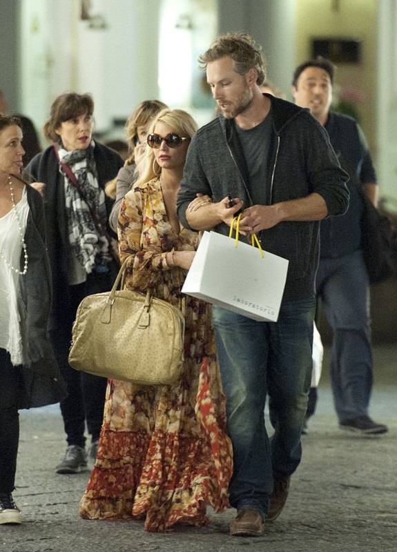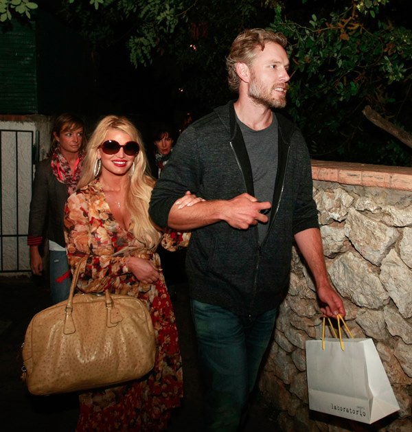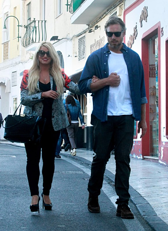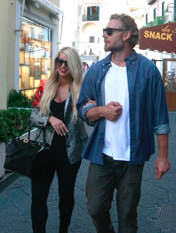 Here are Jessica Simpson and her freeloading fiancé in Capri yesterday with family and friends, including her mother reportedly on a scouting mission for their upcoming wedding. They’re now speculating that it’ll happen next July at the Giardini D’Augusto.
