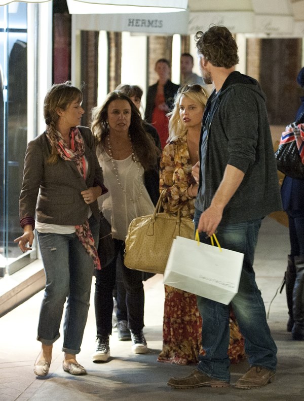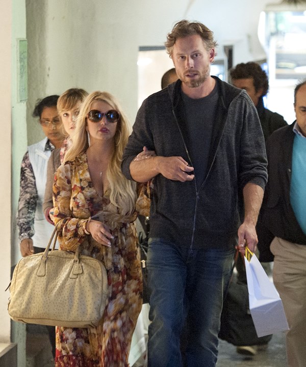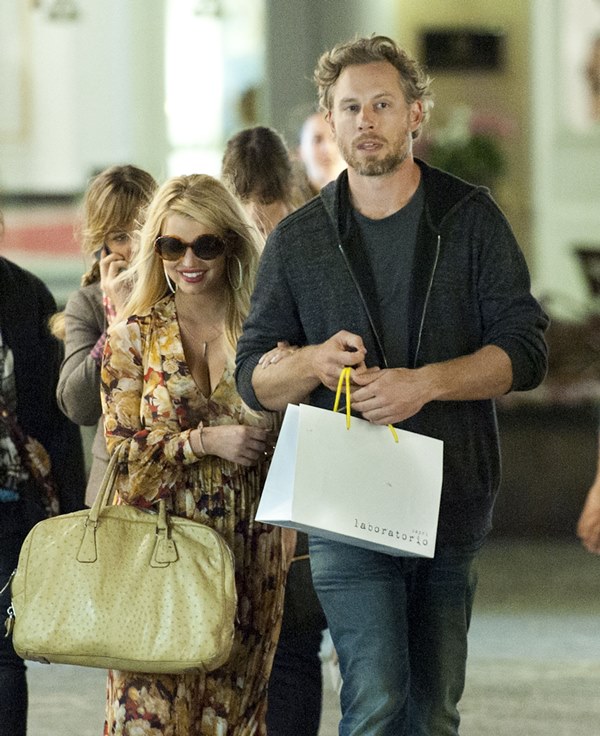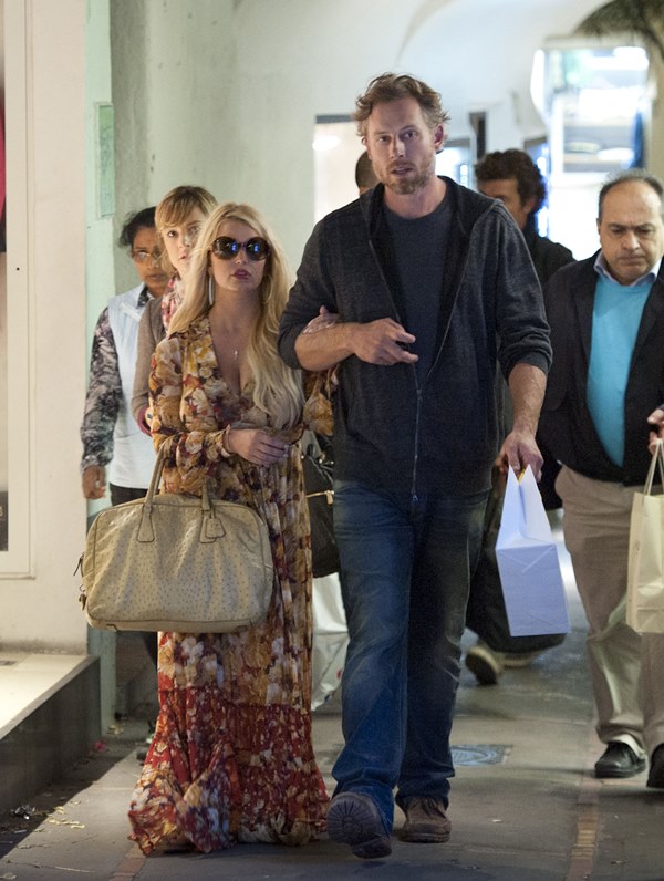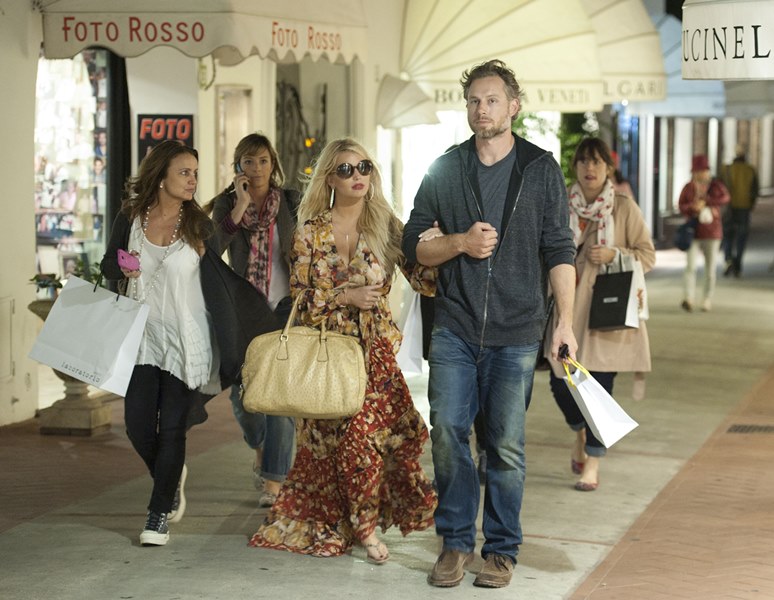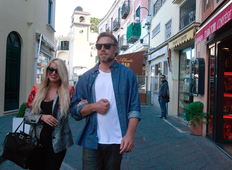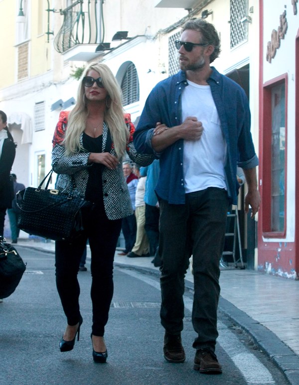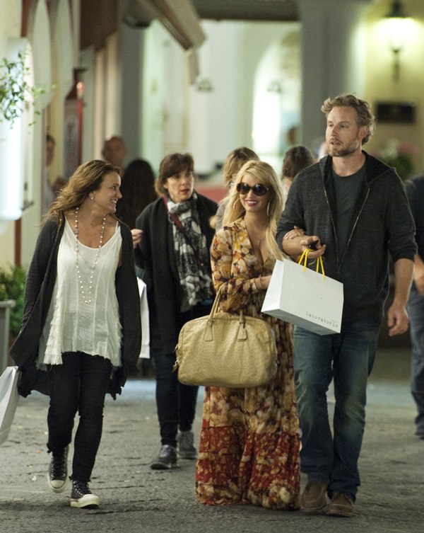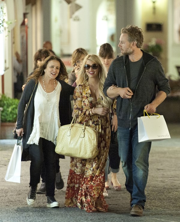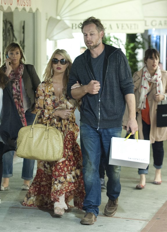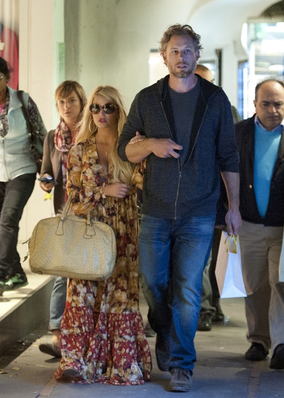 Here are Jessica Simpson and her freeloading fiancé in Capri yesterday with family and friends, including her mother reportedly on a scouting mission for their upcoming wedding. They’re now speculating that it’ll happen next July at the Giardini D’Augusto.
