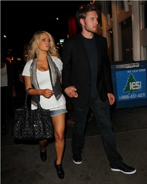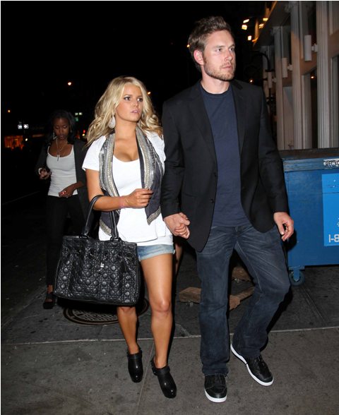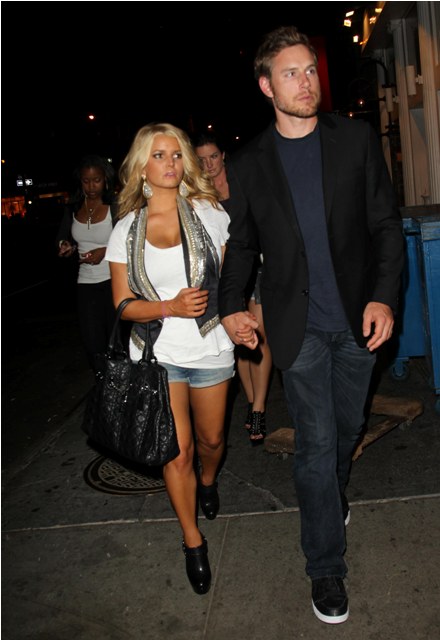 Jessica Simpson presented her jeans collection last night in New York surrounded by friends and family and of course attached to her boyfriend Eric Johnson who, as you know, has nowhere else to be anyway.