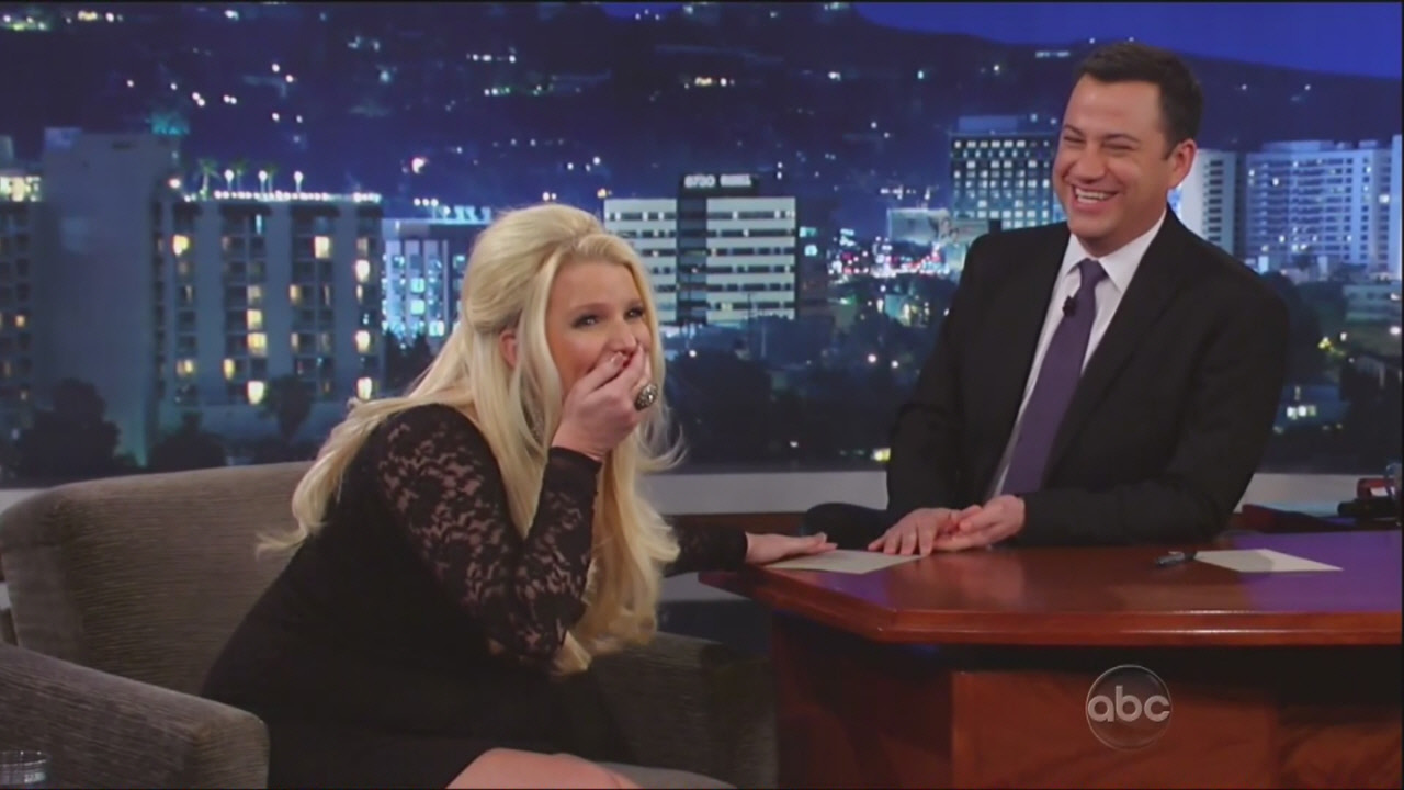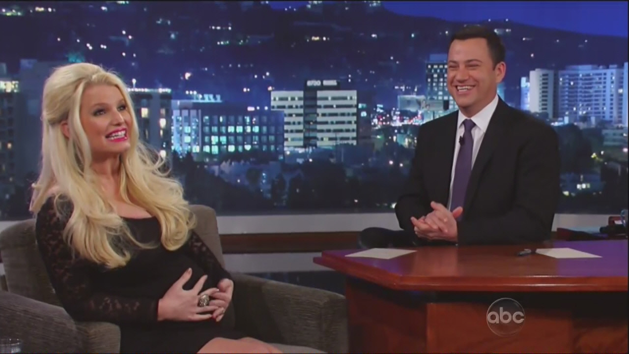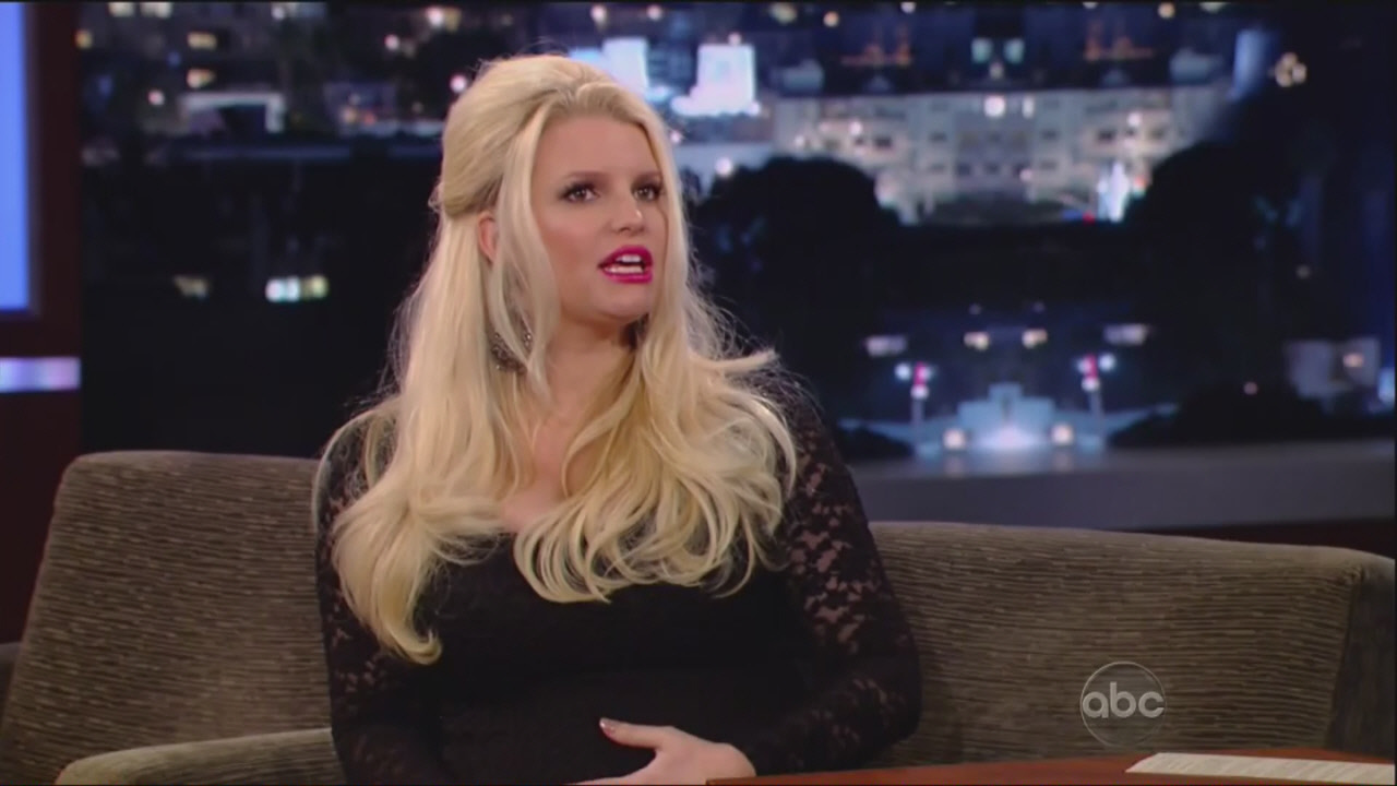 Jessica Simpson inadvertently revealed on Jimmy Kimmel last night that she’s having a boy. Porny is currently promoting Fashion Star, although mostly she just talks about being pregnant which, I guess, isn’t entirely her fault because when you’re pregnant, that’s all anyone ever asks you about. Like no one ever in the history of the world has ever been pregnant before. We are seemingly obsessed about something that has been happening forever. You’d think pregnancy was just invented recently.