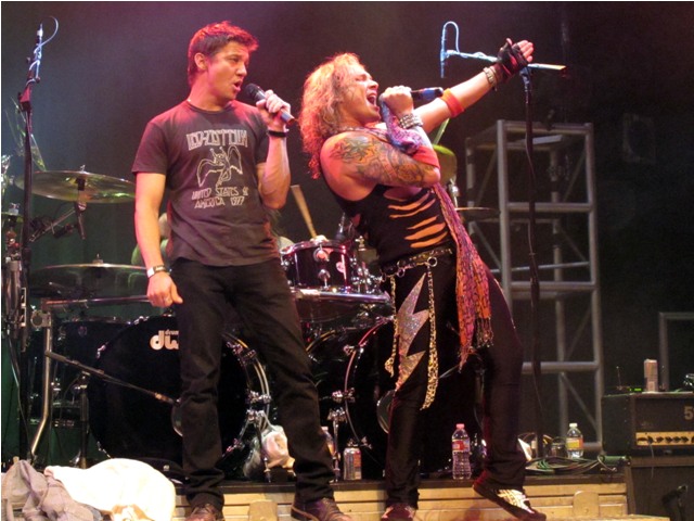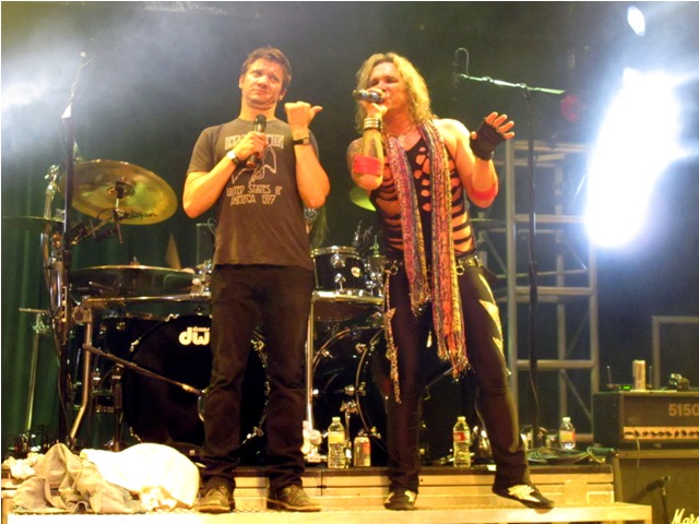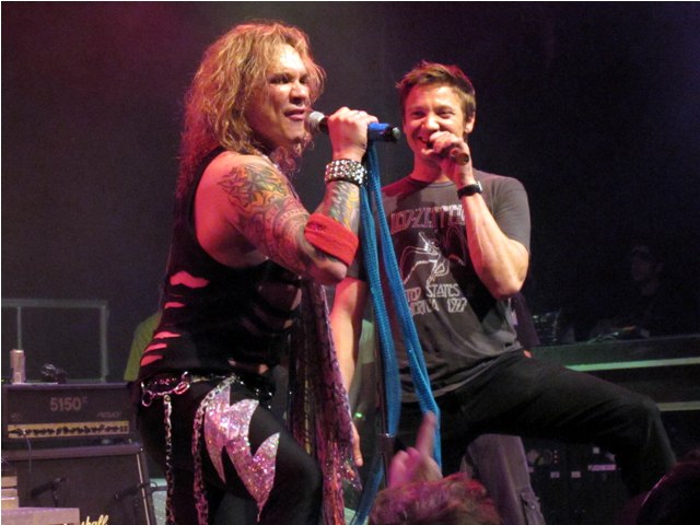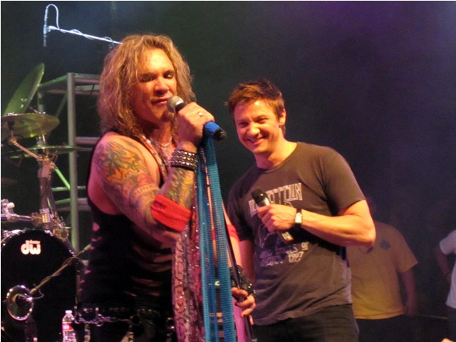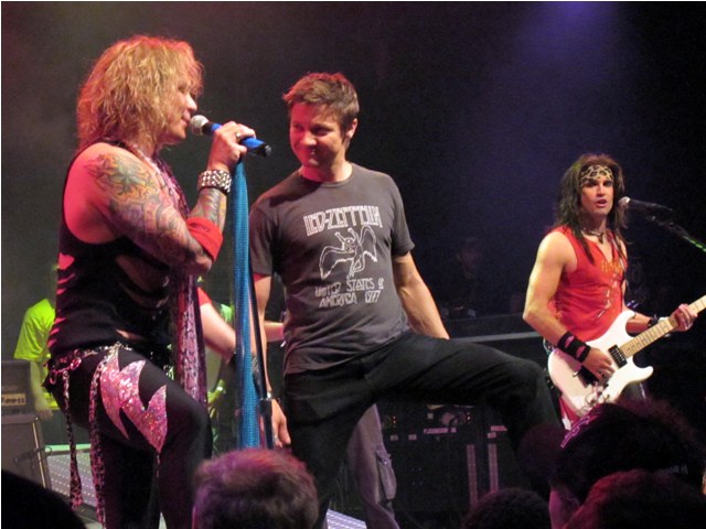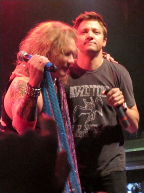 By the way, you know how I’ve always noted that he was so hot in The Hurt Locker and so not everywhere else? Just came across these photos dated April 20th at the Steel Panther House of Blues show when Jeremy joined the band on stage for a few songs after getting pulled up by the lead singer. There’s a spark, non? A hint of the sex that was pulsing in the movie? It’s there.
