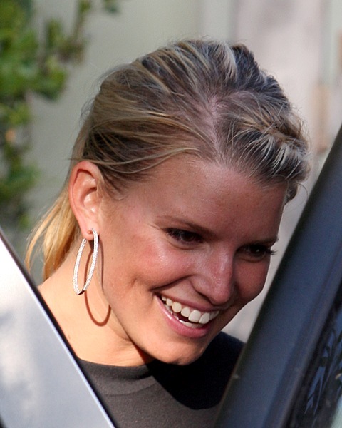 Especially yesterday, out and about in LA, her skin so fresh, and very natural makeup – she is SO pretty when she’s not porned up and primped to look like a sex doll. This is the Jessica Simpson who can throw it back in QB1’s face: