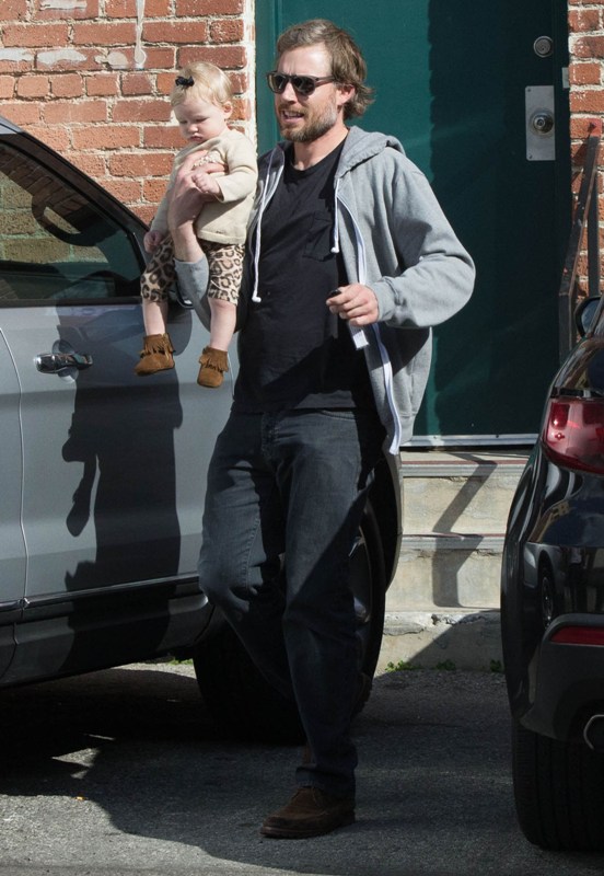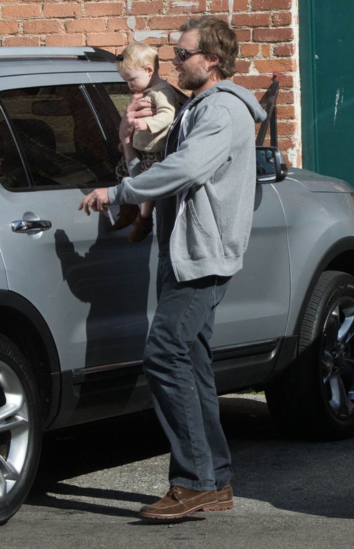 Check out Porny leaving a meeting yesterday in LA with good hair and makeup. So many of these women look better when they’re not expecting to be professionally photographed, non? While she was doing business, her fiancé was handling baby Maxwell in a black bow. This I can appreciate too. He’s a freeloader who gave up a first class education but at least he’s not sitting around on his ass with his hand on his balls watching TV all day. Or, at least he wasn`t yesterday.