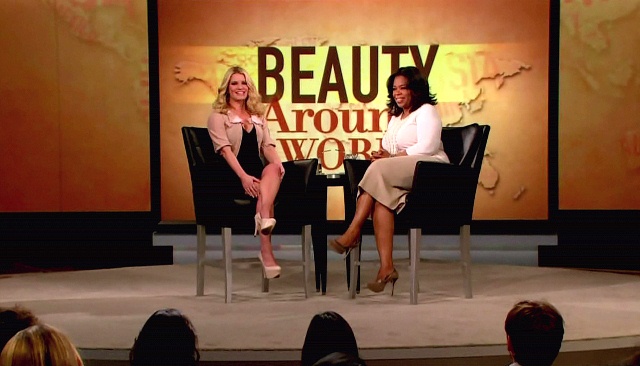 She was on Oprah yesterday promoting her new VH1 show The Price of Beauty. Filmed last year, Jessica Simpson travelled around the world on a beauty journey joined by her best friend CaCee Cobb and her main ‘mo and hair stylist Ken Paves. The purpose, I think, is/was to show how f-cked up our beauty standards have become and to celebrate the most enlightened beauty standards from other cultures and/or examine the damaging ones in the hopes that those practices can soon be weeded out. So yeah, let’s ignore the part where her hair and makeup are perfect in every shot.