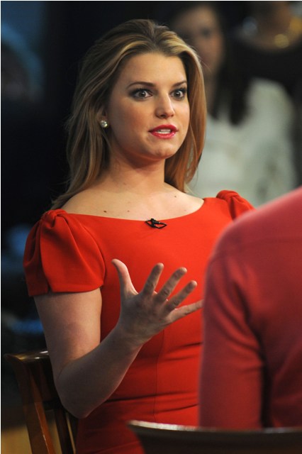 Jessica Simpson’s show The Price of Beauty premieres tonight. She’s making the morning show rounds for a last promotional push. This red dress, it’s better than last week’s Letterman dress. The sleeves help. And it’s a better neckline. But that f-cking length. When it cuts her off below the knee. It’s horrid. It’s the worst spot for her body. It makes her short little legs even shorter. And stumpy.