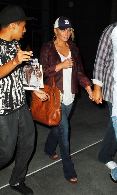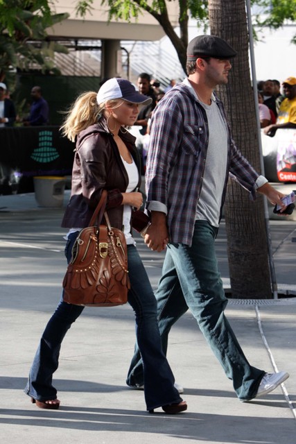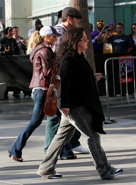 And last night Porny and Tony showed up at the Laker game. She was wearing her skinny jeans. Give it another week or two. She’ll be dressed in much less, weighing less, getting papped at Katsuya or something. A great example for her “find the beauty within” reality show.
