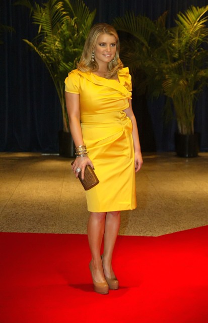 My Porny Simpson attended the White House Correspondents’ Dinner this weekend. I supposed it’s not the worst thing she’s ever put on. But still...with the light bouncing off all that yellow sateen, it’s like a f-cking boob eclipse. And she doesn’t exactly look young and fresh. Remember, Porny isn’t yet 30. And they insist on making her well past.