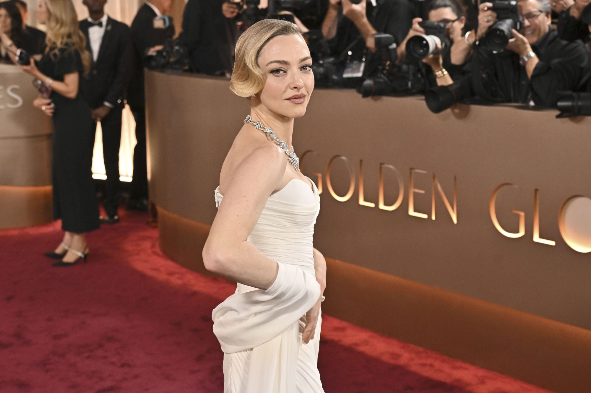 As for Amanda Seyfried – this is Versace, it’s lovely, but it’s also… kinda… same? Not a swing for her in the least. There’s been a lot of ruched and strapless looks for her over the last several weeks and I don’t find this recent addition to the list all that memorable. Amanda was not nominated for a SAG last week – the guild went with Kate Hudson instead (???) which means there’s some work to do on the campaign circuit if she’s to be invited to the Oscars. This may be the last time we see her on the carpet this season unless she presents.