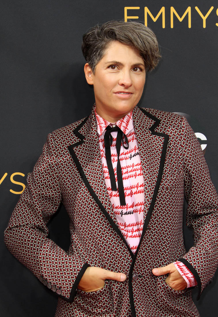 I did get eyestrain trying to see if the black squiggle on Soloway’s blouse was a word, and if it was, what it said. Didn’t her drama teacher ever tell her people would be distracted if you wore clothing with words on it? Or…have I been living a lie all this time?